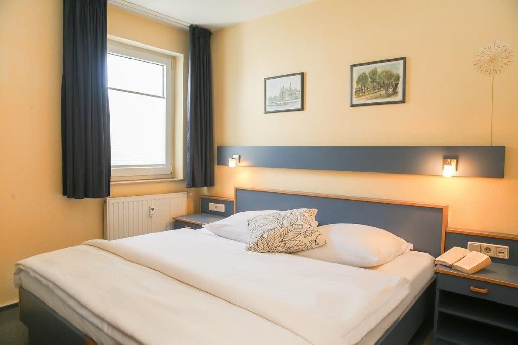 - 1. Schlafzimmer mit Doppelbett, Kleiderschrank und TV