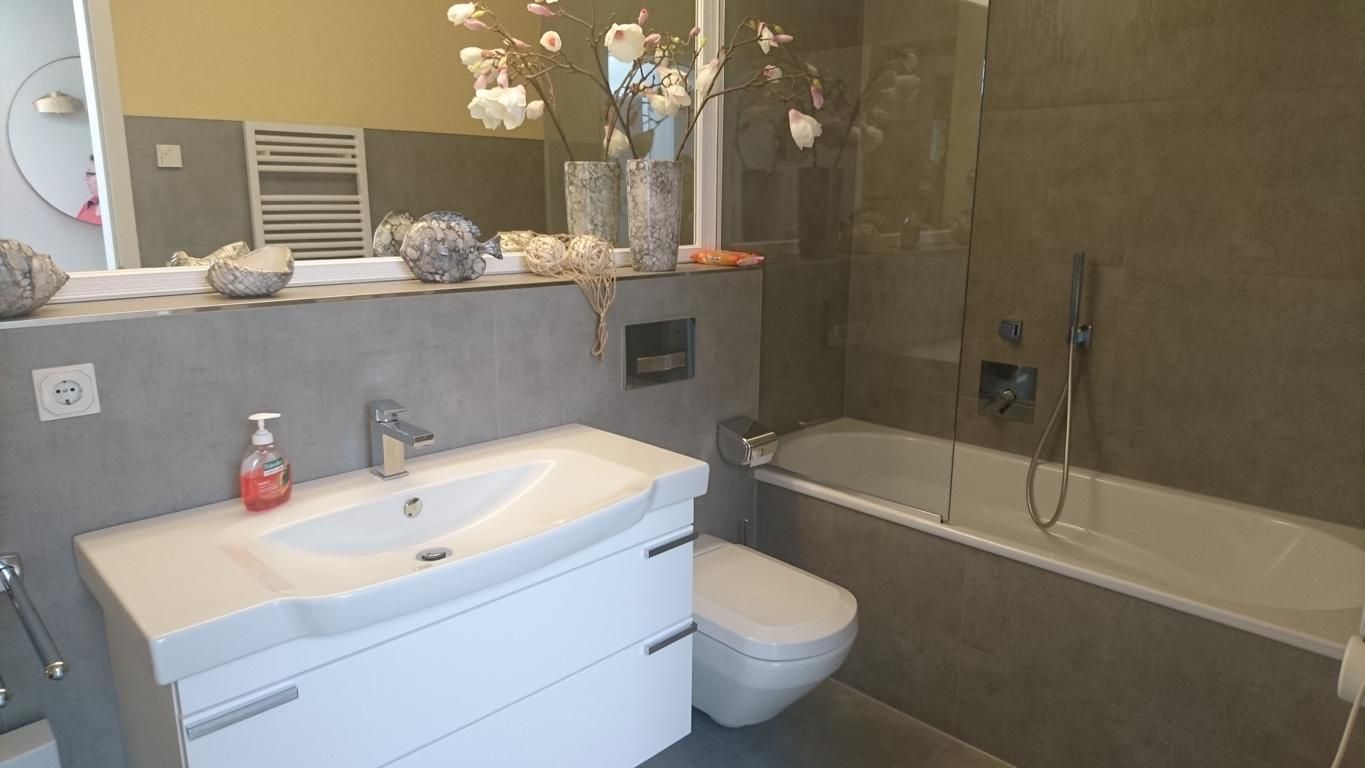 - Badewanne mit Duschabtrennung/WC und Waschmaschine