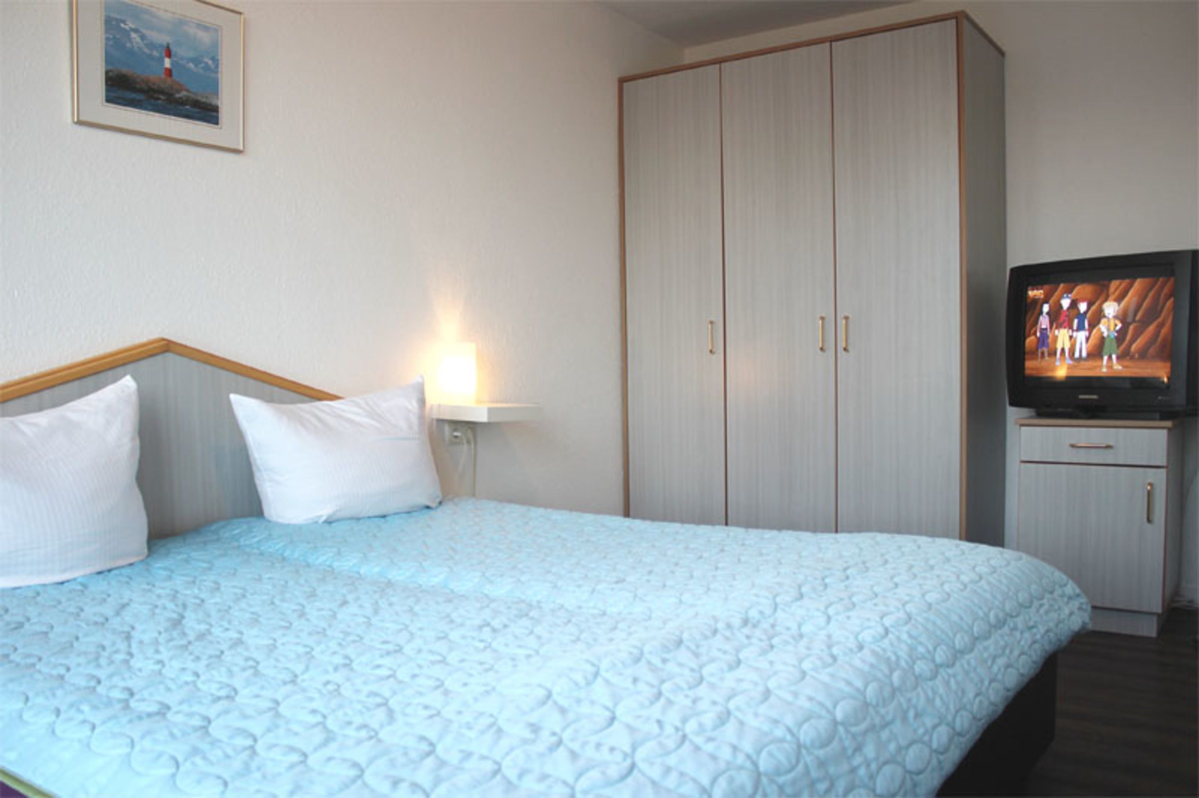 - 1. Schlafzimmer mit Doppelbett und Kleiderschrank, TV