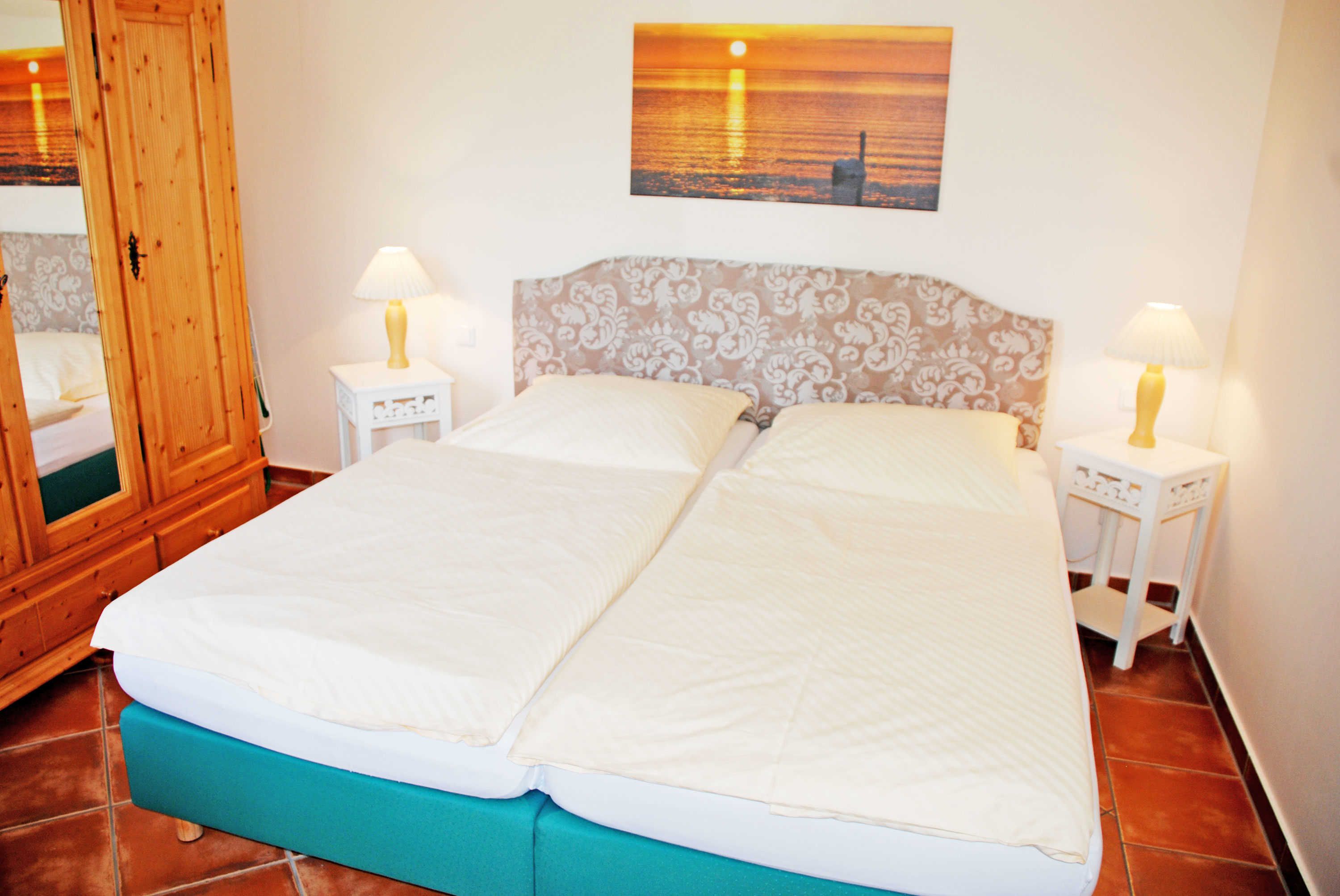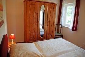 Dieses großzügig und sehr liebevoll eingerichtete Appartement verfügt über ein Wohnzimmer, eine separate Küche und zwei Schlafzimmer sowie Bad/WC und Flur. Es befindet sich im Erdgeschoss des Landhus und hat Richtung Süden zum Garten eine eigene Terrasse mit Tische und Stühlen. In den beiden Schlafzimmern stehen 2 Doppelbetten zur Verfügung. Im Wohnraum gibt es eine Couch mit Sitzgelegenheiten. Das Bad hat sowohl Dusche als auch Badewanne. Die komplette Einbauküche mit 4-Platten-Ceranherd, Backofen, Mikrowelle, Kaffeemaschine, Toaster, Wasser- und Eierkocher, Kühlschrank usw. lässt keine Wünsche offen. Bitte beachten Sie, Kleintiere sind in diesem Appartement nicht erlaubt!