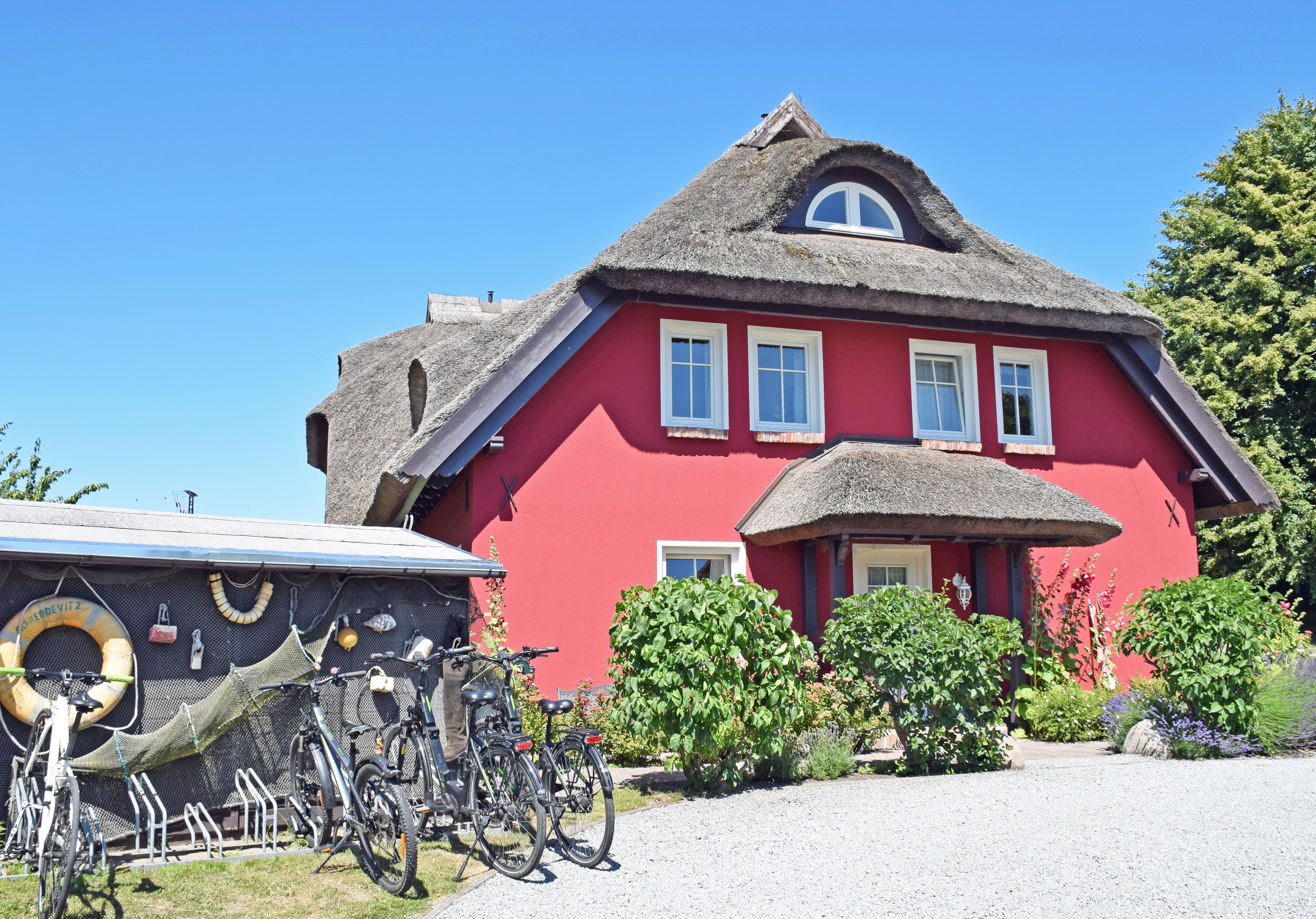 Das gesamte großflächige Grundstück steht dem Urlauber zur Verfügung und wurde von uns bis ins Detail liebevoll gestaltet. Auch für Familien mit Kindern gibt es viele Angebote: Piratenboot, Wippe, Tischtennisplatte, Fußball und vieles mehr. Die Appartements im Untergeschoß verfügen über eine eigene Terrasse mit Tisch und Stühlen, zu der man durch die Verandatür gelangt. Für die Gäste aus dem oberen Stockwerk sind ausreichend gemütliche Sitzecken im Garten eingerichtet. Ist man einmal strandmüde, stehen hier auf dem Rasen eigene Strandkörbe für das Sonnenbad am Landhus zur Verfügung. Hier können Sie in einer ruhigen Ecke des Grundstücks, mit Blick auf den Bodden und die Hügelkette des Großen Zicker, gut entspannen.