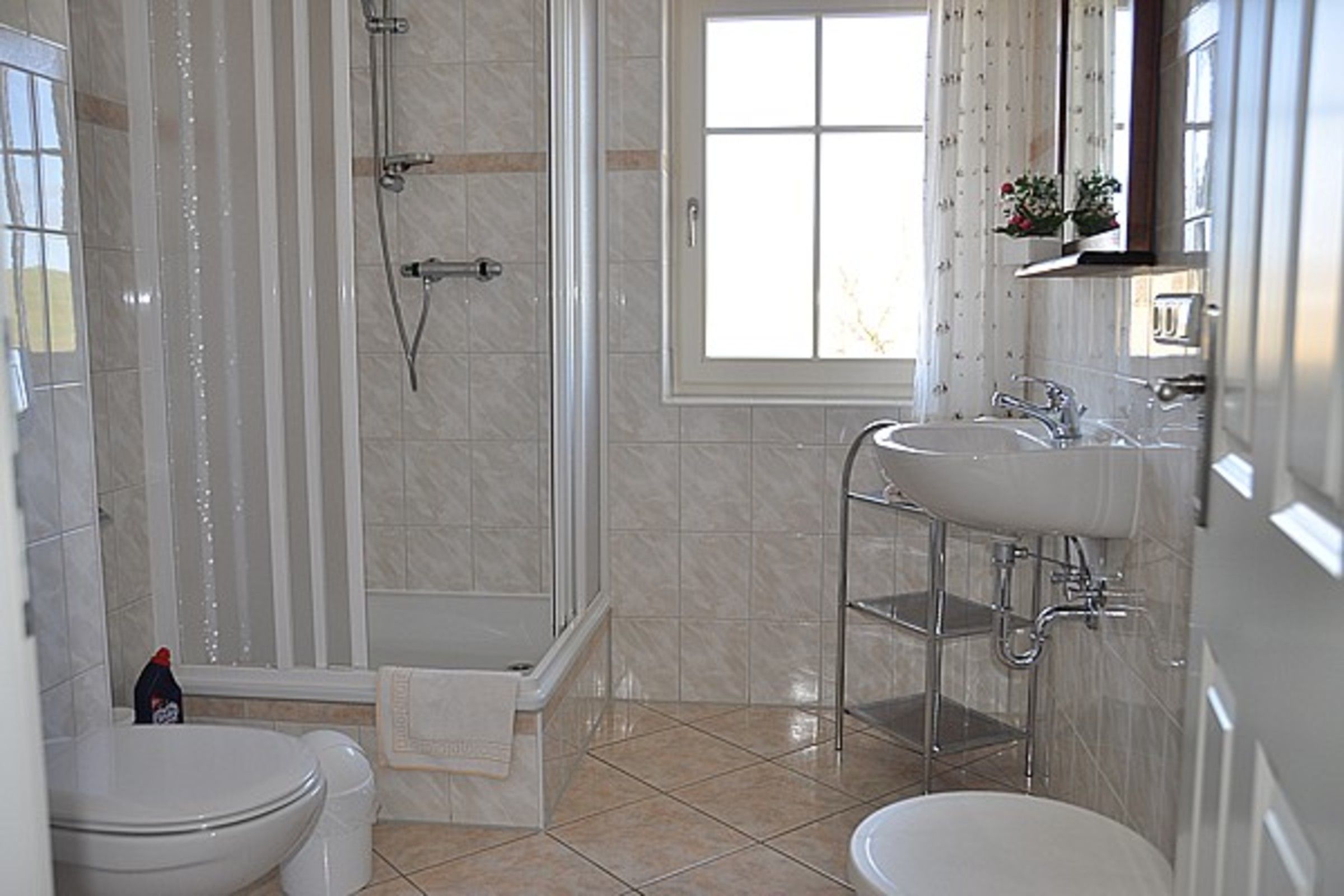 Dieses großzügige und sehr liebevoll eingerichtete Maisonette Appartement verfügt über ein Wohnküche und ein großes Schlafzimmer sowie Bad/WC und Flur. Es befindet sich im Obergeschoss des Landhus, das Schlafzimmer ist über eine Treppe bequem zu erreichen. Im Schlafzimmer stehen ein Doppelbett und ein Einzelbett. Eine weitere Liege oder ein Kinderreisebett können hier als Aufbettung gegen Aufpreis bereitgestellt werden. Im Wohnraum gibt es eine Couch mit Sitzgelegenheiten. Das Bad ist mit einer Dusche ausgestattet.