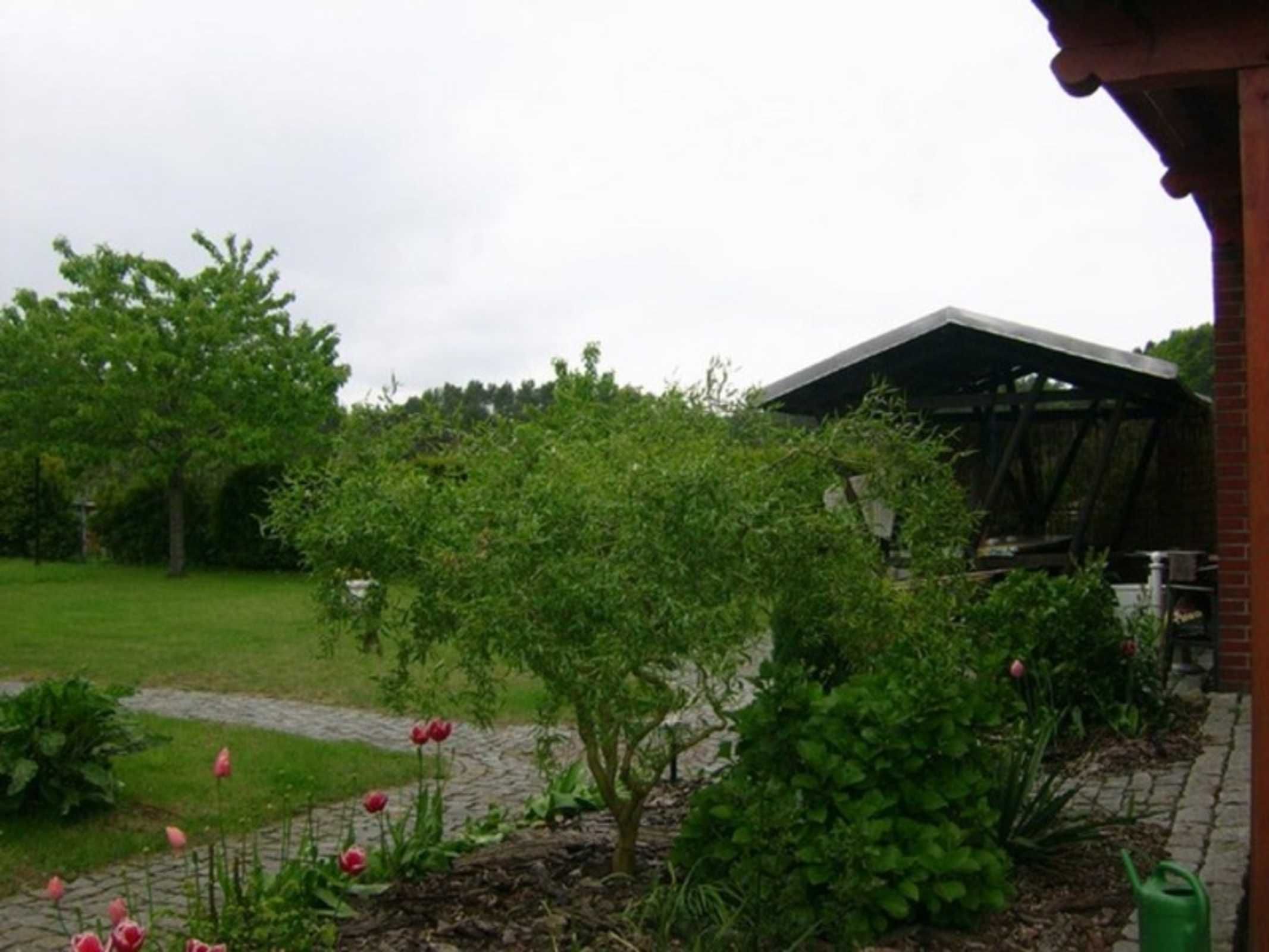 Bei schönem Wetter lädt eine große Liegewiese zum Relaxen ein. Ebenfalls steht eine gemütliche Sitzecke mit Grillmöglichkeit im Garten zur Verfügung.