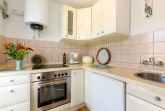 Erdgeschoss: Wohnzimmer mit Flachbild TV, DVD-/CD-Player, Radio, Doppelschlafliege (Federkern 1,40 x 2,00 m), Tisch, 2 Sessel, Einbauküche mit E-Herd/Backofen, Kühlschrank/Tiefkühlfach, Kaffeemaschine und Toaster, Dusche/WC