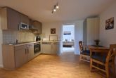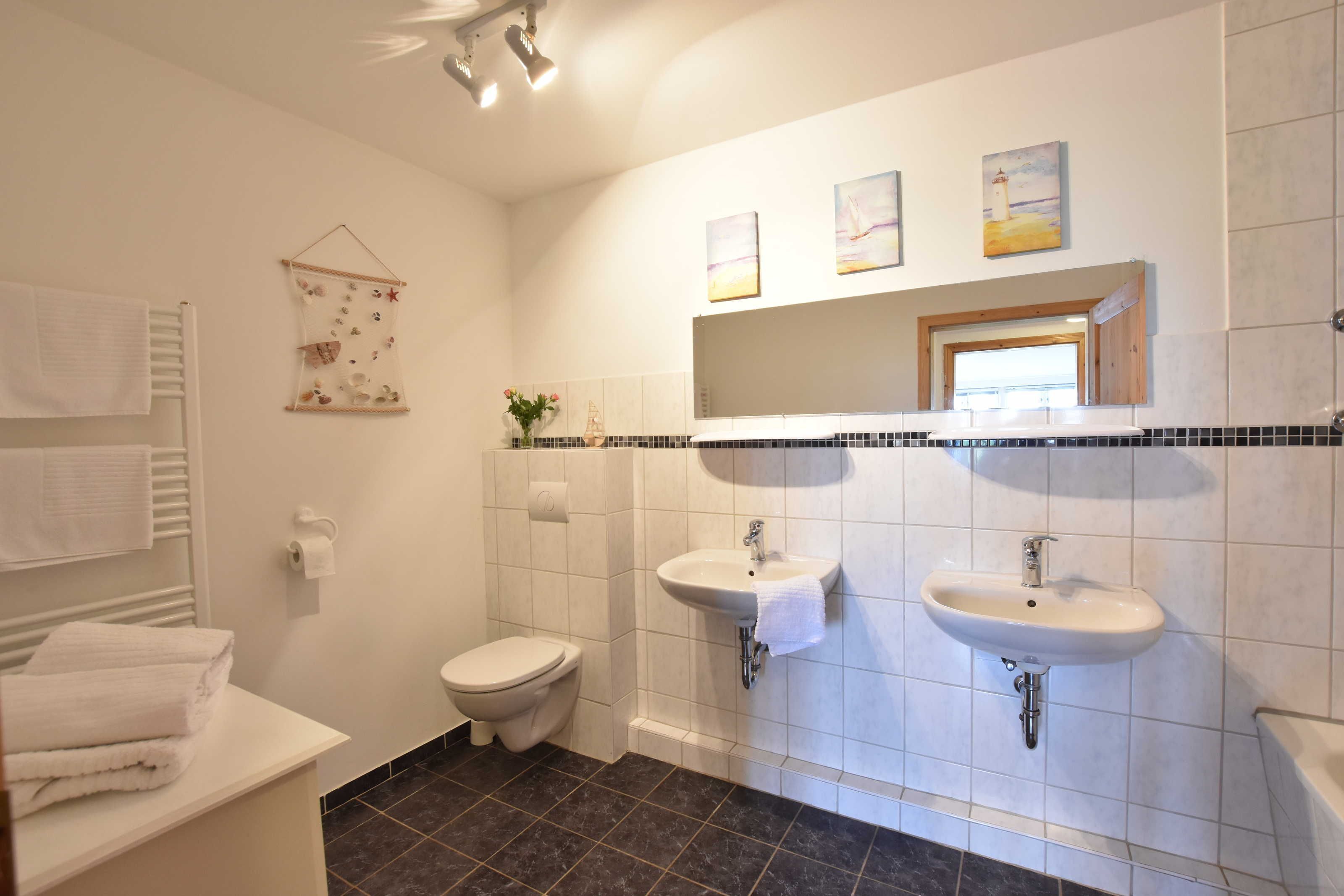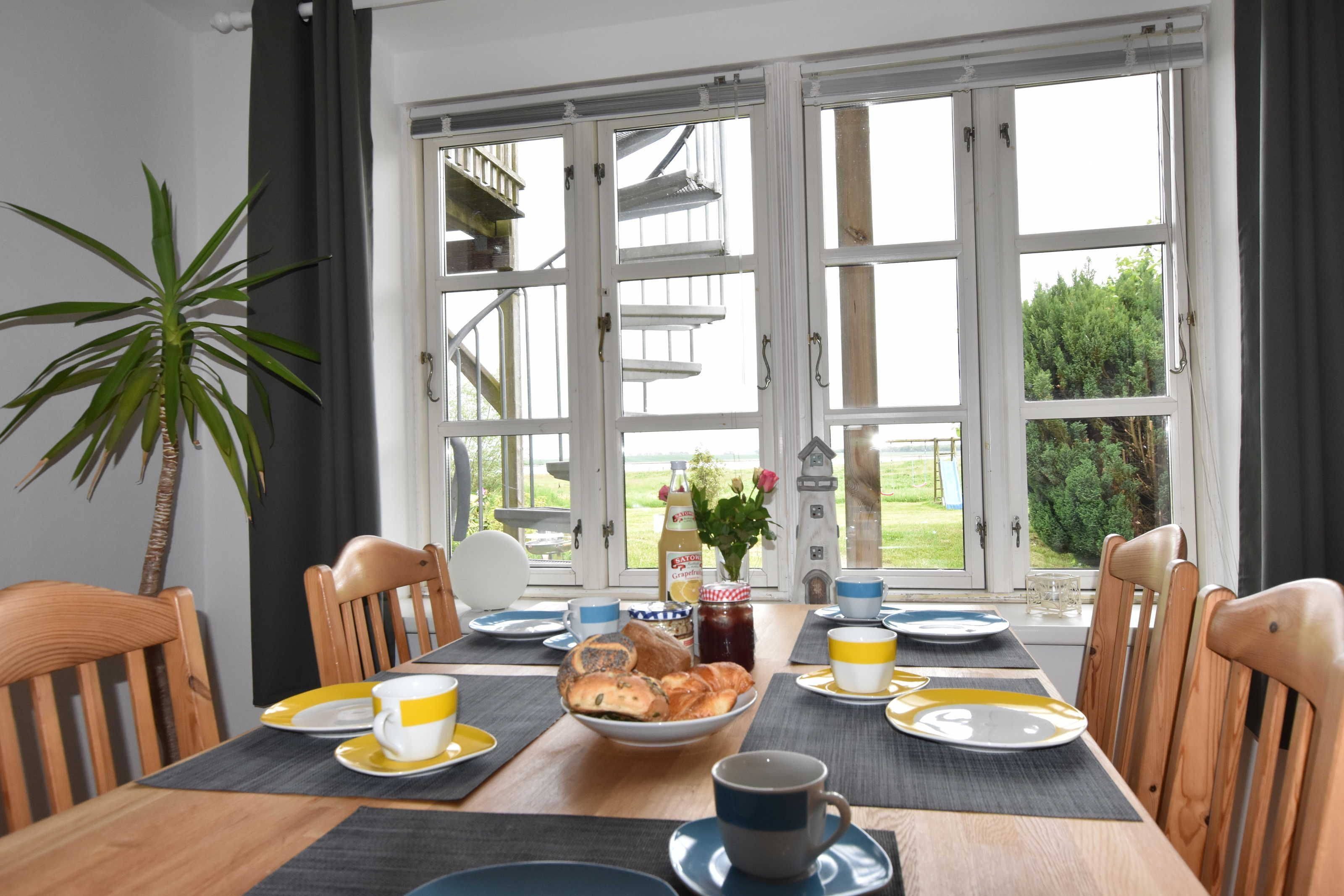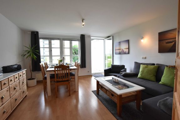 Ferienwohnung Nr. VII: 3- Raum -Fewo im Erdgeschoss ist vom Mobiliar ausgestattet wie die anderen Wohnungen dieses Objektes. App. VII (5 Erw.+ 1 Kleinkind) mit Blick auf das Wasser und separatem Eingang. Küche mit Esstisch, Einbauküche (4- Platten- Herd, Backofen, Toaster, Wasserkocher, Kühlschrank mit Gefrierfach, Geschirrspüler). 1 Wohnzimmer Esstisch, TV und Ausziehcouch für 2 Personen und einem herrlichen Wasserblick. Zwei Schlafzimmer (1 x 1 Doppelbett 1,80 x 2,00 sowie 1 x Doppelbett 1,60 x 2,00 und 1 Einzelbett 0,90 x 2,00). Bad mit Badewanne und integrierter Duschkabine.