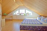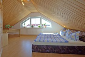 Für einmalig 8 € kann das 4. Schlafzimmer, das sich im Spitzboden befindet und mit einem kleinen Bad (Waschbecken/WC), separat von den anderen Zimmern ausgestattet ist, genutzt werden. Dieser Schlafraum ist nur über eine ausziehbare Leiter erreichbar. Bei guter Sicht kann man von dort aus bis zu den Störtebeckerfestspielen nach Ralswiek hinüberschauen.