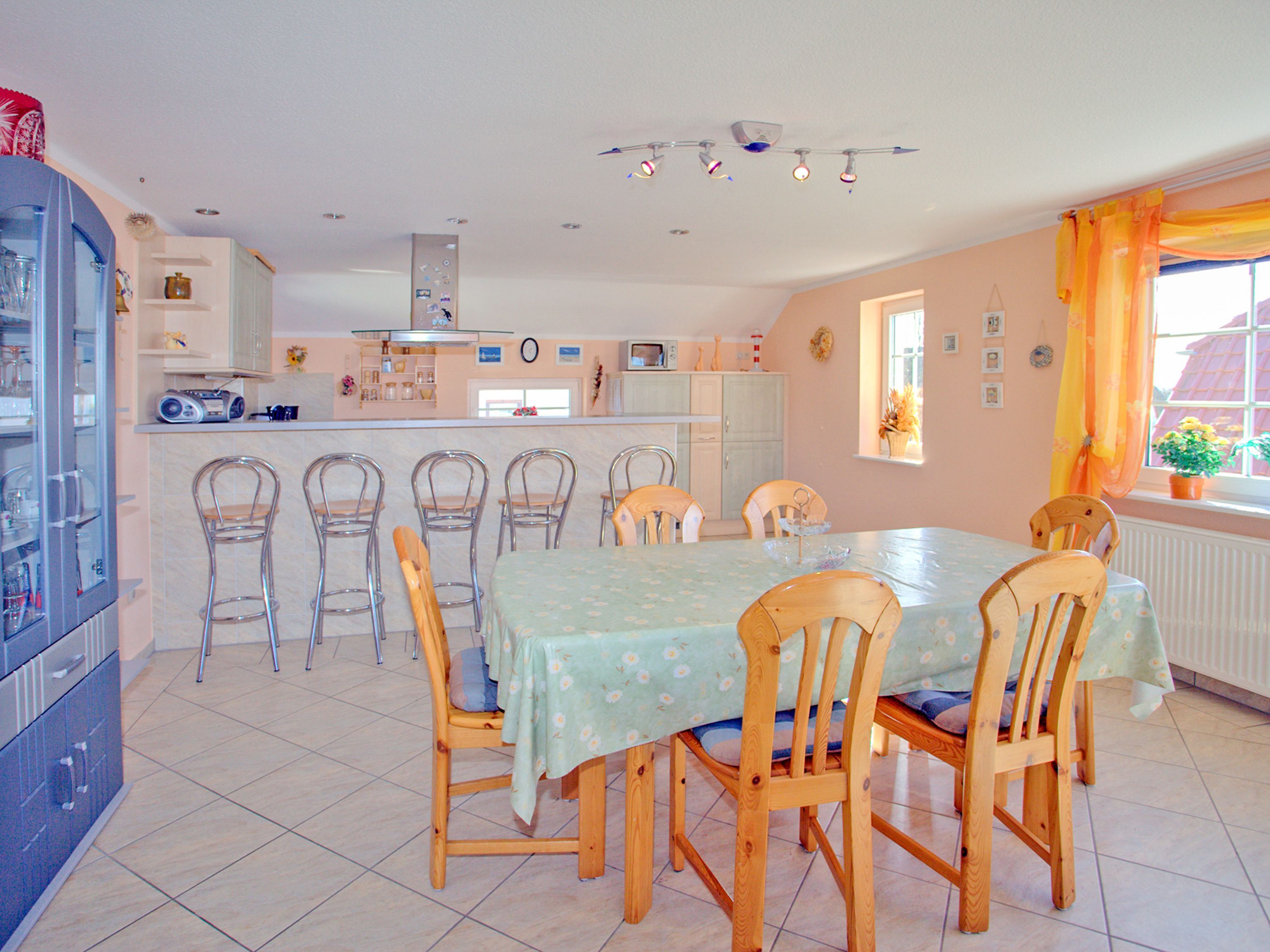 Die Ferienwohnung 4 ist ein ca. 130qm großes Dachgeschoss-Apartment von absoluter Luxusklasse. Hier finden Sie alles was zu einer modernen Wohnung gehört. Als da wären: 2 große Dachterrassen, 2 Bäder (Dusche/WC, Wanne/WC) und ein Gäste-WC, ein fast 50 qm großes Wohnzimmer mit amerikanischer Küche, Tresen, Barhockern. Bis zu 4 Schlafzimmer (wobei 2 davon durch eine große Dachterrasse miteinander verbunden sind), Geschirrspüler u.v.m.