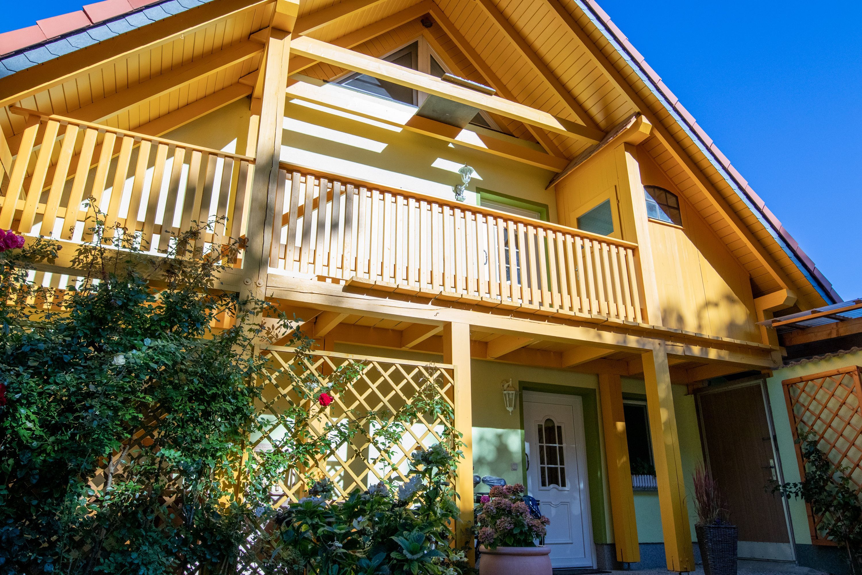 Die 70m² große 4-Raum-Ferienwohnung umfasst 2 Etagen und ist ausgelegt für eine Belegung mit bis zu 6 Personen. Sie befindet sich im Obergeschoss des Haupthauses und besteht aus einer voll ausgestatteten Küche, einem Wohnzimmer mit Fernseher, drei separaten Schlafzimmern (davon zwei im Dachgeschoss) sowie einem Bad mit Toilette, Waschbecken und Badewanne.