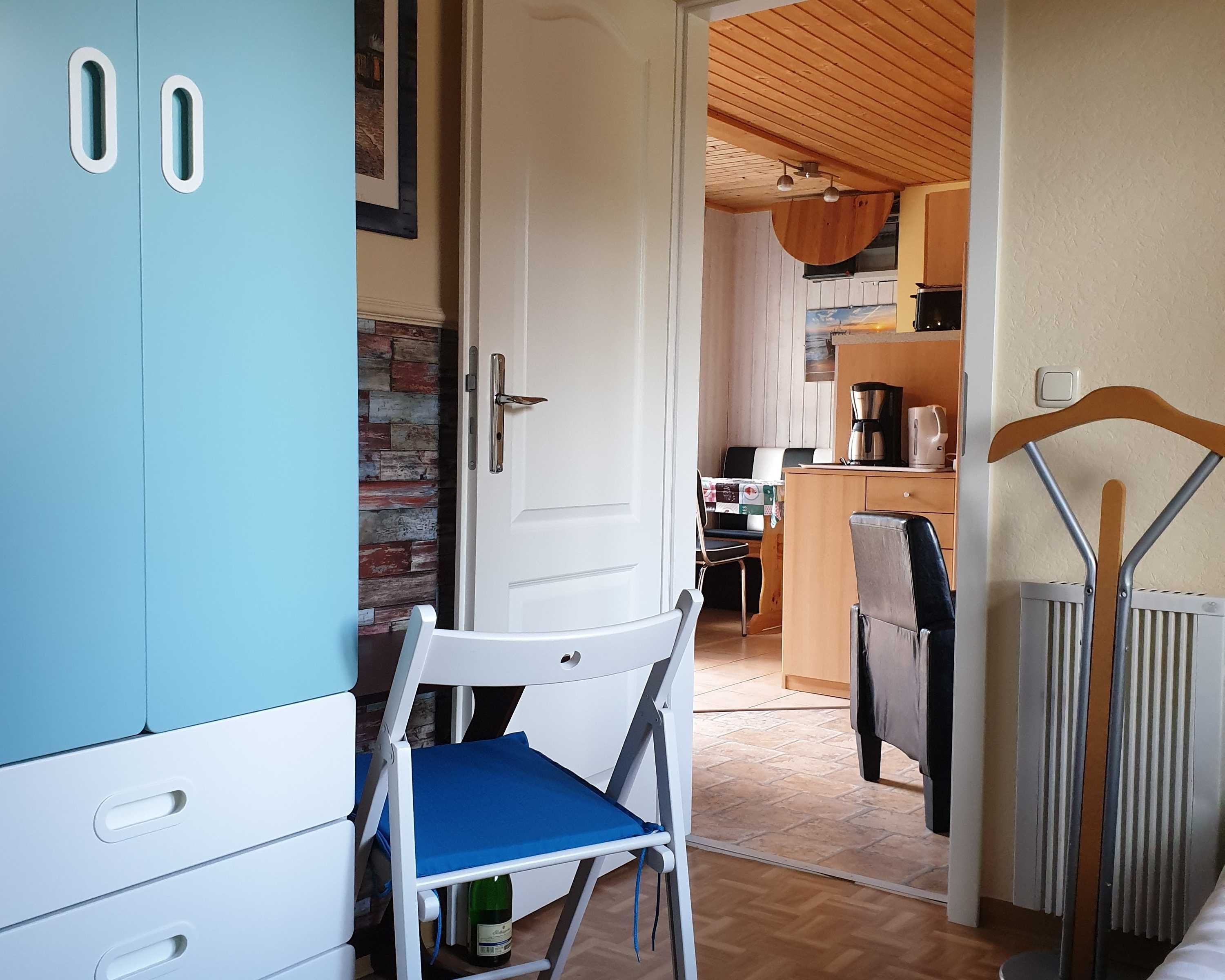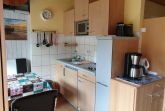 gut ausgestattete Pantryküche mit Herd, Wasserkocher, Gläser, Geschirr, Besteck, Mikrowelle, Kaffeemaschine, Toaster, Kühlschrank, Staubsauger + Kabel, CD/DVD Player, Kinderreisebett und Hochstuhl