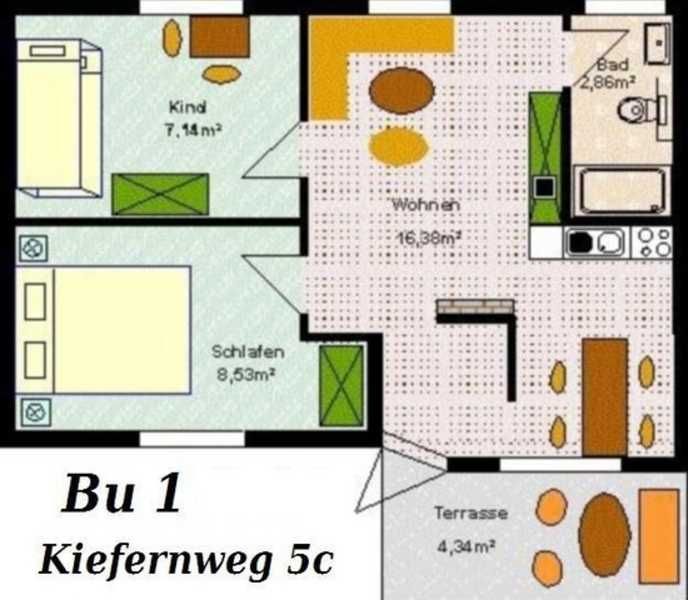 Der Kiefernweg 5 ist zu Fuß ca. 600m vom Strand- ca. 8 Gehminuten, entfernt. Den Strand erreichen Sie über den Zeltplatz, wo Sie am Morgen frische Brötchen und Waren des täglichen Bedarfs bekommen.