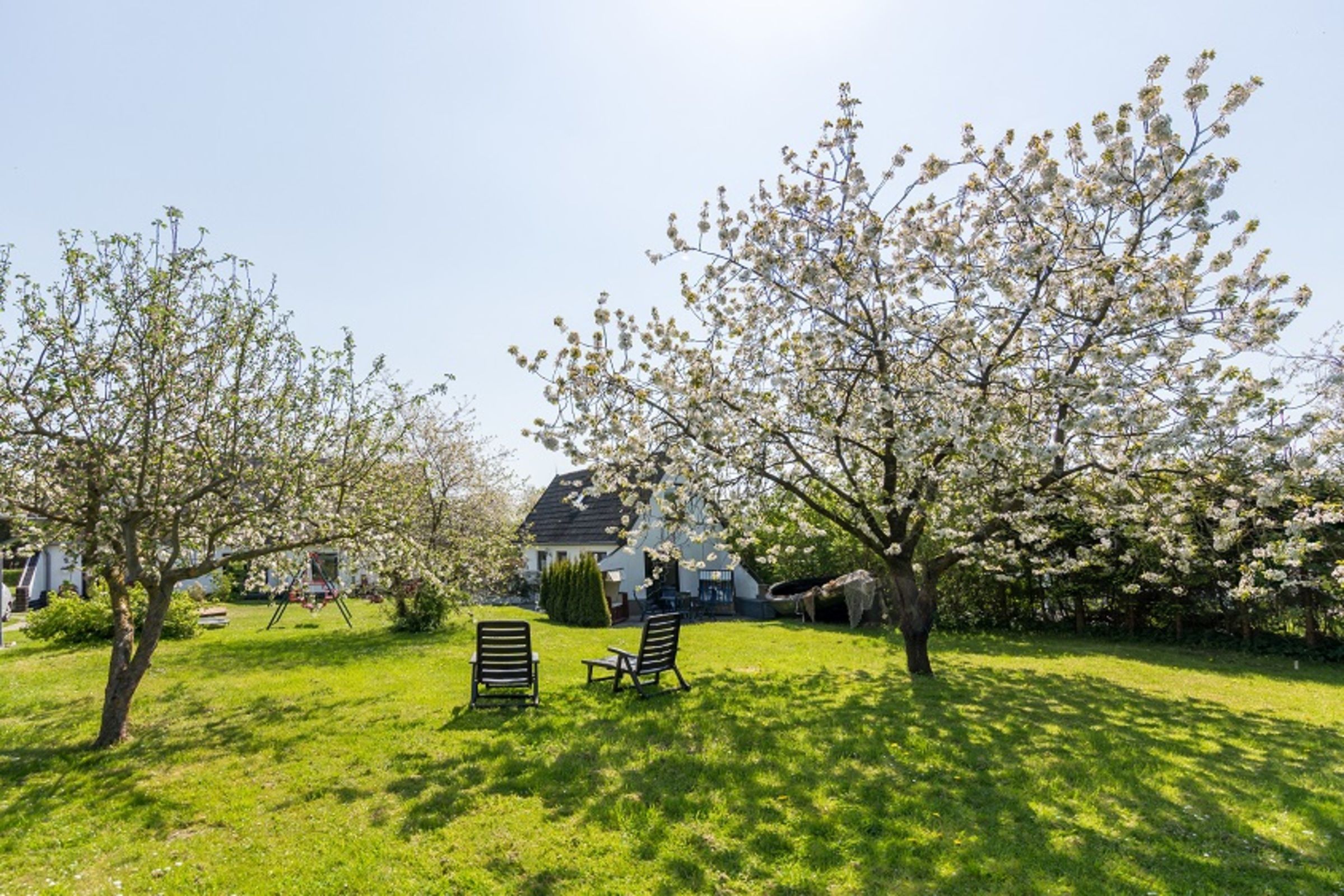 Sie wohnen auf einem 3000 m² großen gepflegten Gartengrundstück mit vielen alten Obstbäumen. Hier haben Sie viel sepraten Platz und Ruhe zur Entspannung. Es befinden sich außerdem noch das Haupthaus der RügenHerz Ferienhausvermietung mit den Wohnungen Strandliebe und Dachträume sowie die Fischerhütte auf dem Grundstück. Jedes Quartier hat eine eigene Terrasse mit Wärmestrahlern und Grill . Es gibt ausreichend privaten Platz im Garten sowie Sonnenliegen, genügend Pkw-Stellplätze, einen Wäscheplatz sowie Spielplatz. Die kostenfrei zur Verfügung stehenden Fahrräder können von allen Gästen genutzt und die eigenen Drahtesel untergestellt werden.