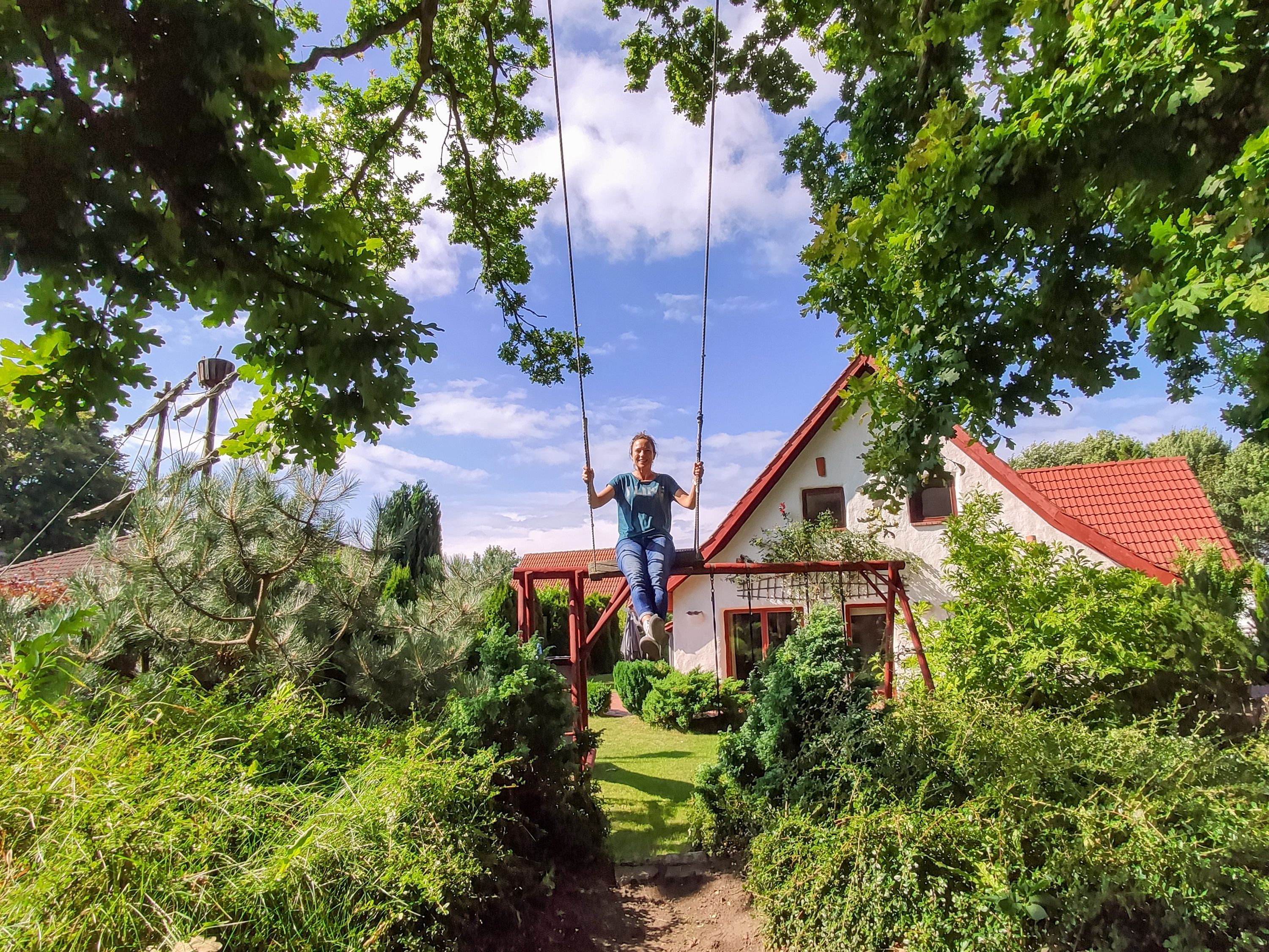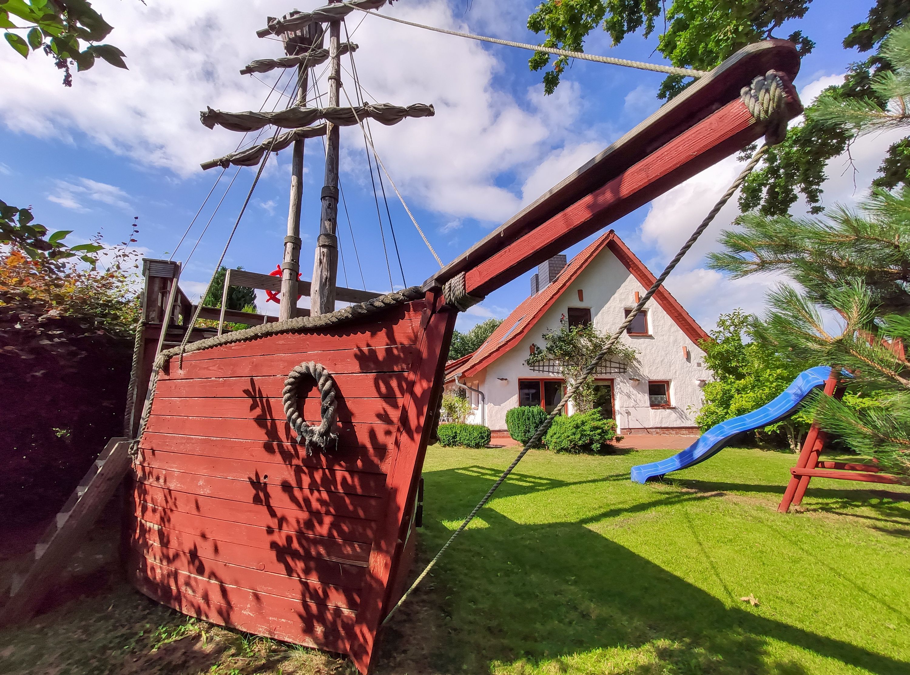 Das Haus ist umgeben von einem herrlich angelegtem Garten. Die Außenanlagen beinhalten offene Unterstellmöglichkeiten für Fahrräder etc. , Spielgeräte sowie ein Piraten-, Kletter- und Spielschiff deren Benutzung ausdrücklich auf eigene Gefahr hin erlaubt ist. Ihnen stehen zum Frühstücken, Grillen oder Sonnenbaden 3 Terrassen zur Verfügung, die nach Osten, Süden und Westen ausgerichtet sind. Sonnenschirm, Gartenmöbel und der Grill stehen schon für Sie bereit.