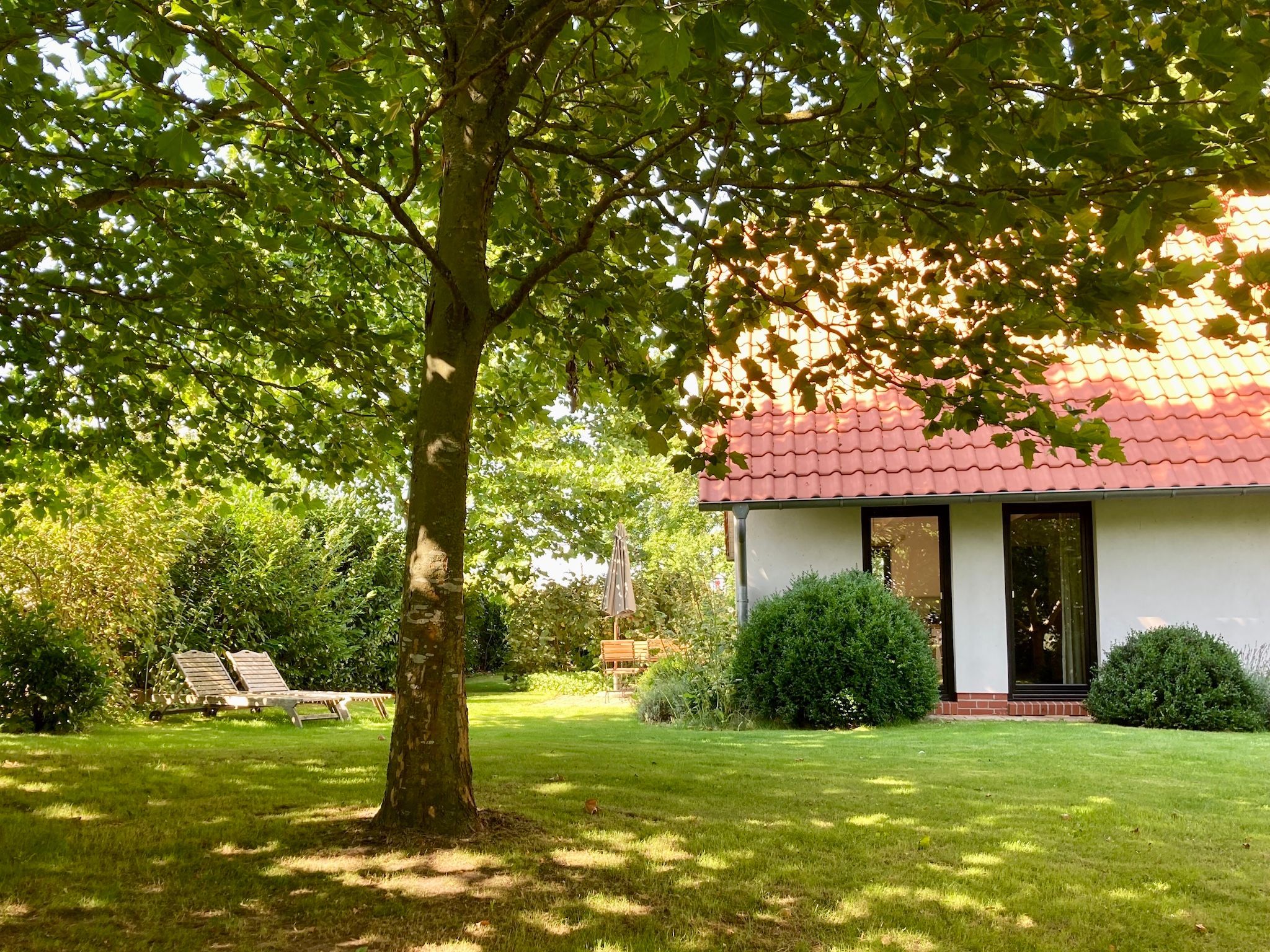 Modern und freundlich gestaltetes freistehendes Ferienhaus für max. 4 Personen in einem weitläufigen, nicht eingezäunten Garten.