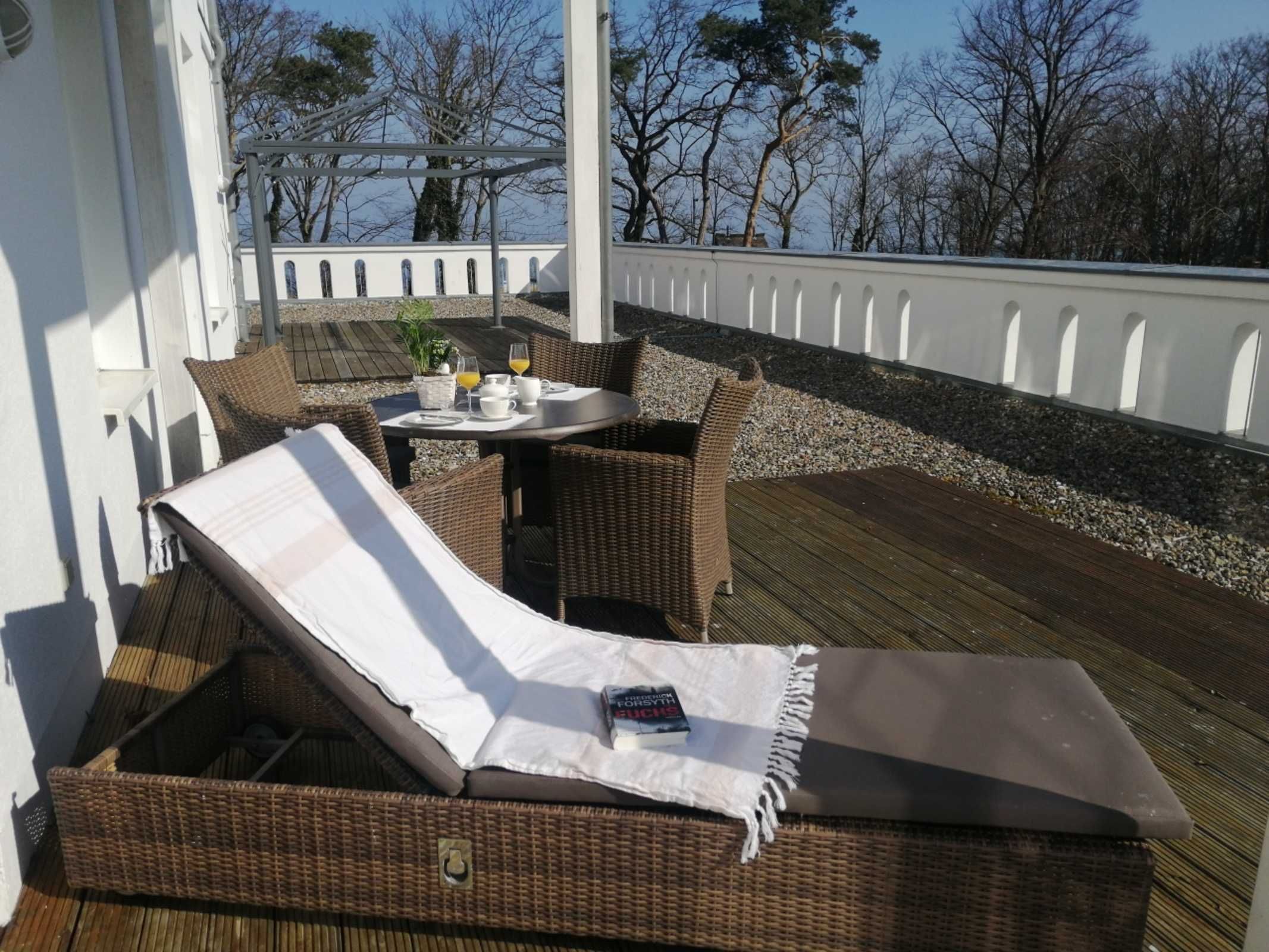 - möblierte Dachterrasse (Süd/Ostlage) mit Meerblick (teilweise durch Bäume eingeschränkt) und Waldblick