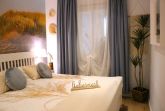 - 1. Schlafzimmer (Fenster zum Atriumzugang) mit Doppelbett und Kleiderschrank