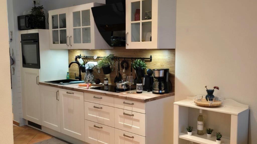 - Küche - 2 Kochplatten, Mikrowelle, Kühlschrank und Geschirrspüler