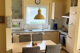- offene Küche - Herd mit Backröhre, Kühlschrank mit Gefriermöglichkeit und Geschirrspüler