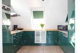 - Küche - Herd mit Backröhre, Mikrowelle, Kühlschrank und Geschirrspüler