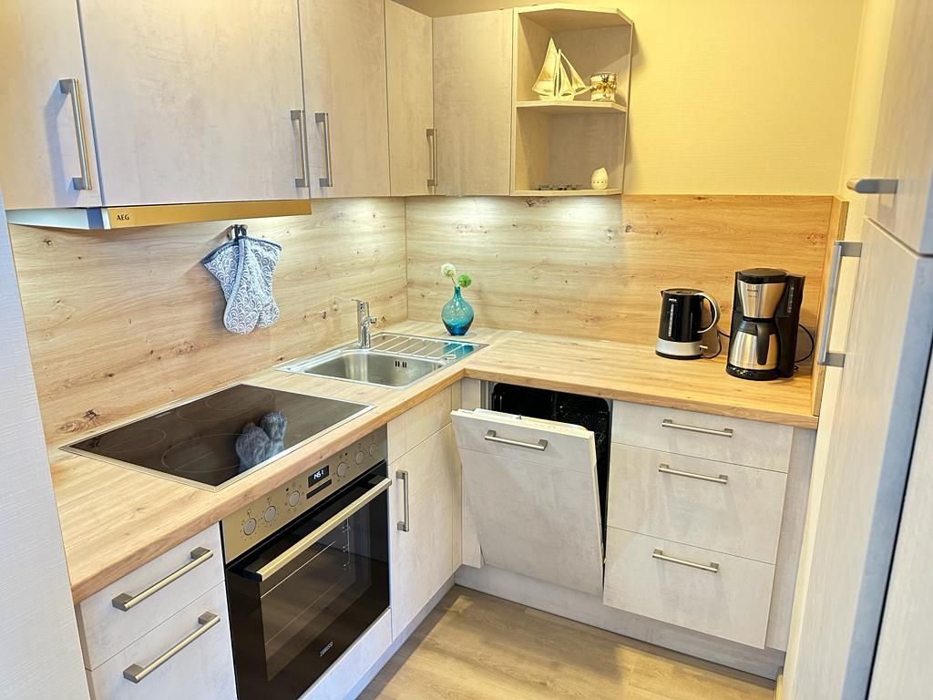 - Küche - Herd mit Backofen, Geschirrspüler, Mikrowelle und Kühlschrank