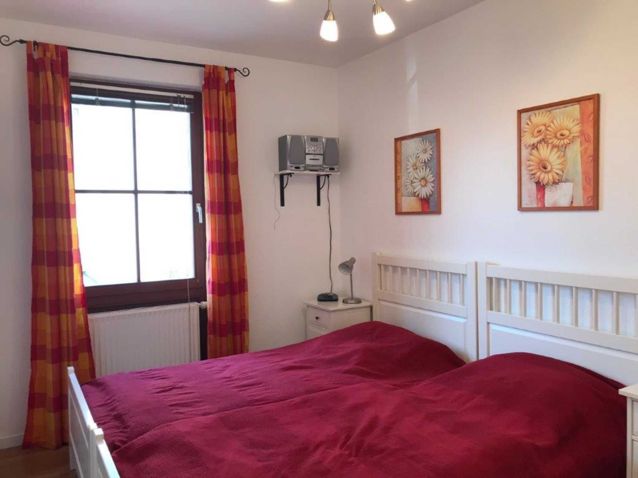- 1. Schlafzimmer mit Doppelbett, Kleiderschrank und TV