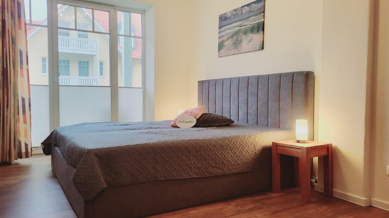 - 1.Schlafraum mit Boxspringbett (getrennte Matratzen) und Kleiderschrank