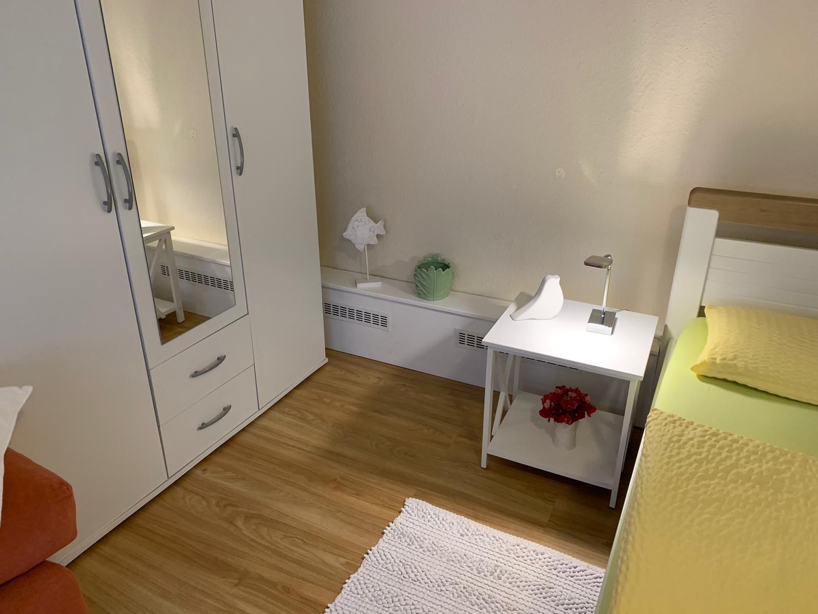 - Wohn/Schlafbereich mit Doppelbett und Kleiderschrank