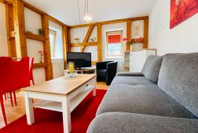 Die schöne Zweiraumferienwohnung 10 Nemo befindet sich im 2. Obergeschoss . Das Wohnzimmer wirkt durch die unverkleideten Holzbalken besonders gemütlich. Die Küchenzeile ist integriert in den Wohnraum und gibt Gelegenheit, sich die Mahlzeiten selbst zuzubereiten. Genießen Sie den Blick aufs Meer vom Schlafzimmer aus. Das Doppelbett im Schlafzimmer hat Komforthöhe, es ist genügend Platz für Ihre Kleidung vorhanden. Bad mit Dusche, kleiner Balkon Richtung Südwest und zusätzlicher Abstellraum. Internet und Sky ( ausgewählte Programme) und Parkplatz inklusive
