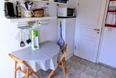 • separate Küche mit Tisch (2 Personen), 4- Plattenherd mit Backofen, Kühlschrank mit Gefrierfach, Mikrowelle, Toaster, Kaffeemaschine, alle Küchengeräte, umfangreiches Geschirr und Gläser