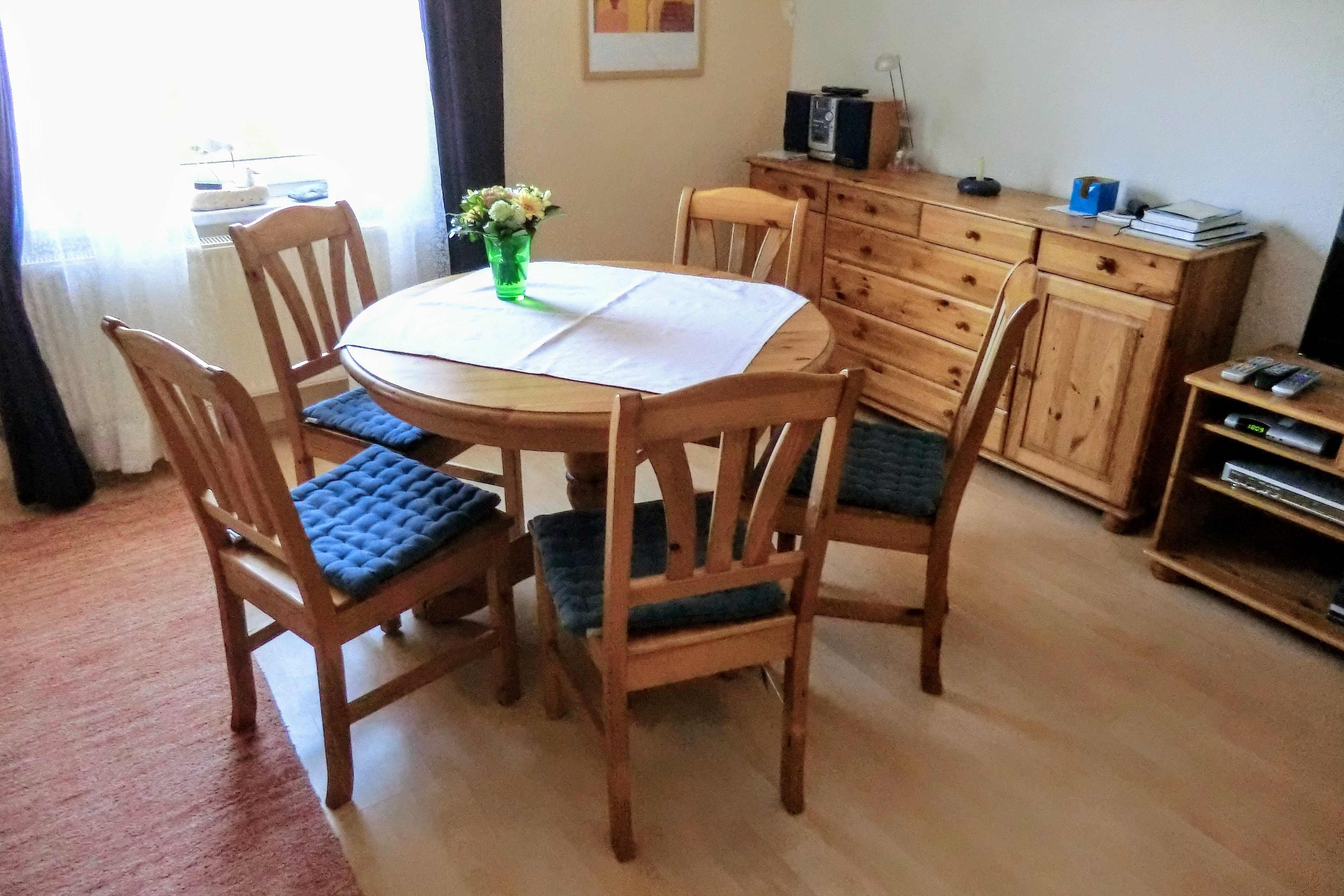 • Wohnzimmer/ Esszimmer sehr gemütlich eingerichtet mit Sitzecke, Liegesessel, große Bücherei und Musiksammlung (CD,MC), digiales SAT- TV und HF, HiFi- Anlage, sowie DVD- Player mit DVD's. Im Wohnzimmer befindet sich ein Schlafsofa für eine Aufbettung (1 Erwachsener )