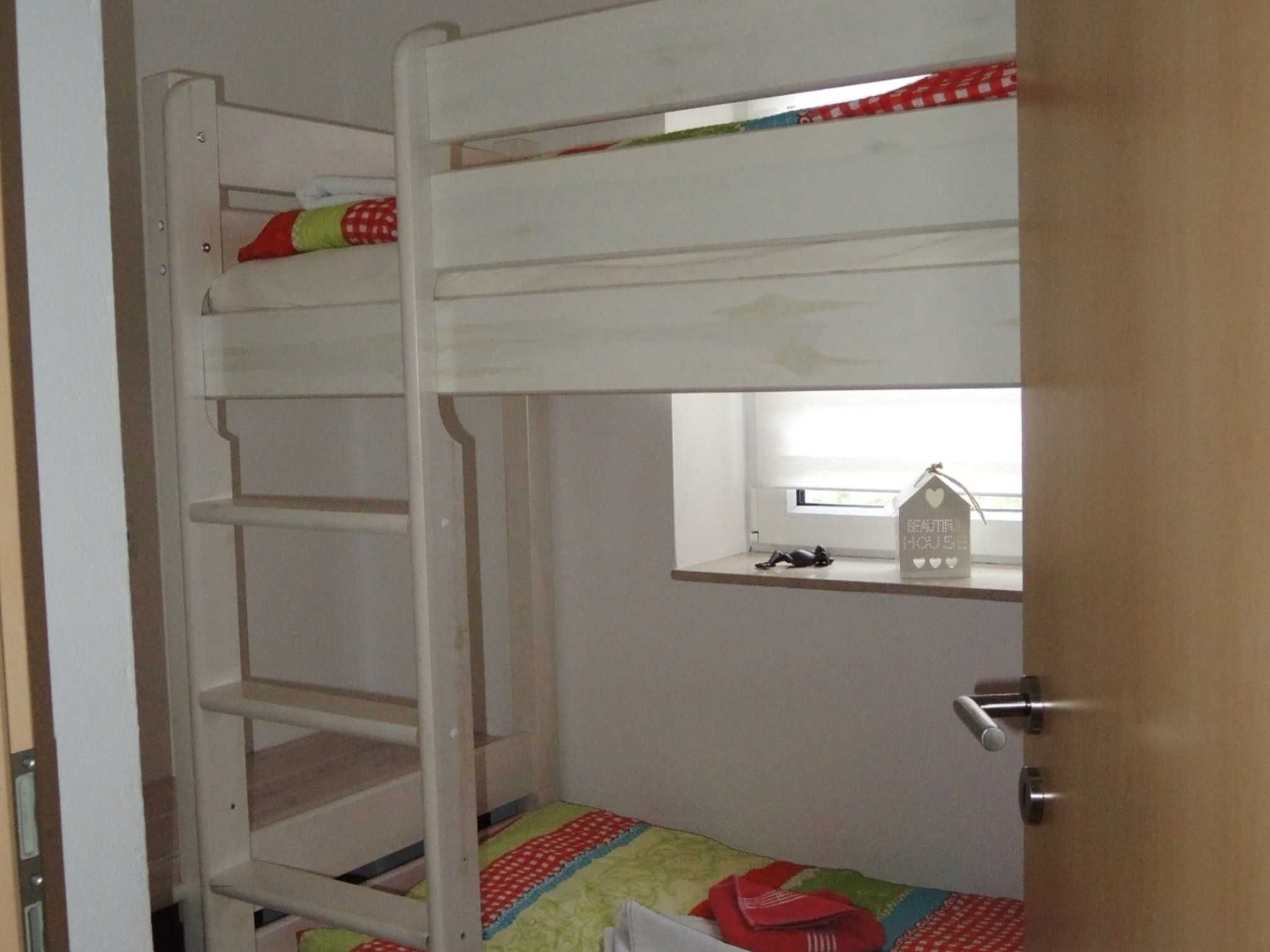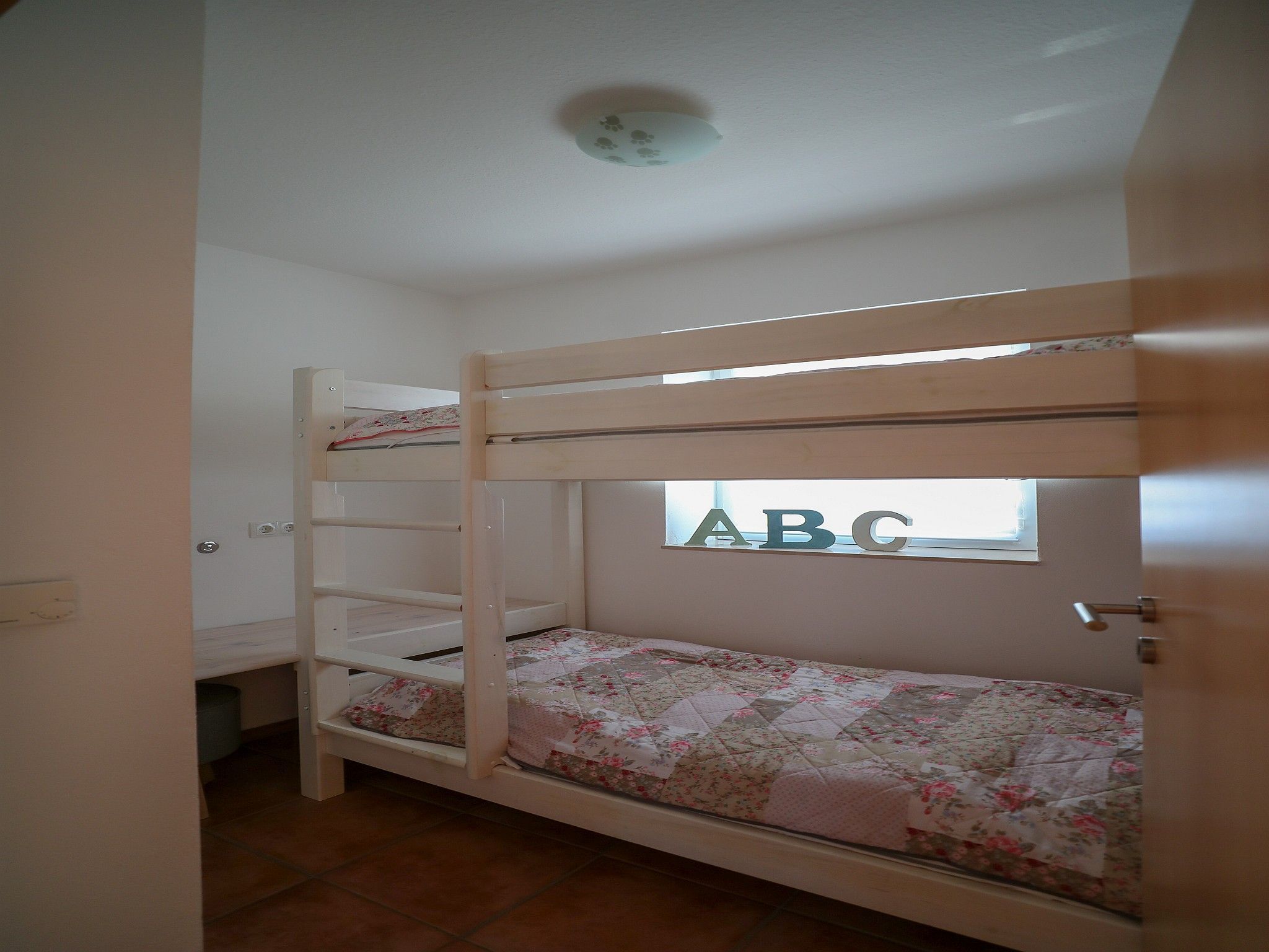 Das zweite Schlafzimmer verfügt über ein Etagenbett für zwei Kinder bis zehn Jahre.