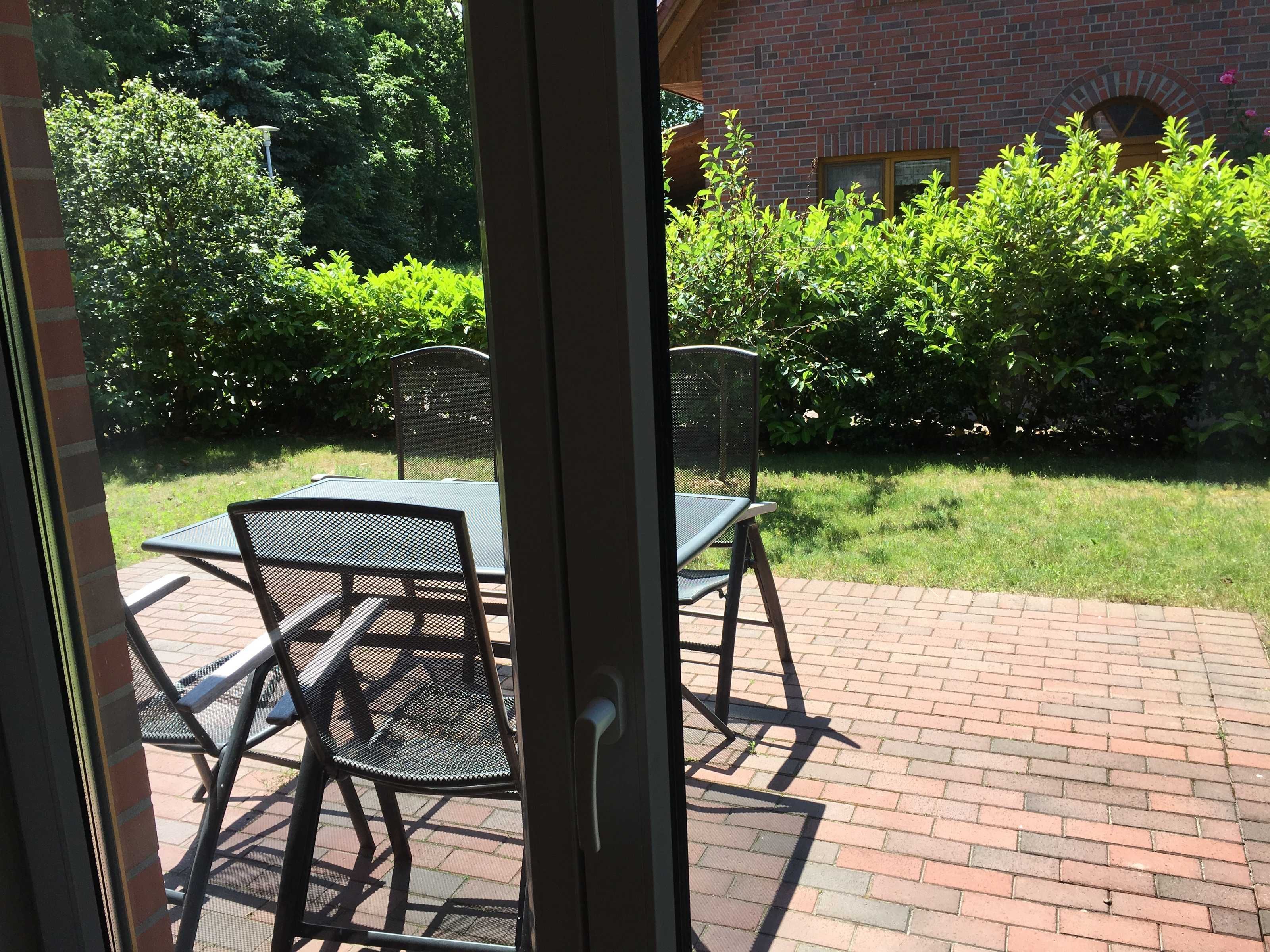 Die ebenerdige Suite mit Garten-Terrasse (Abendsonne) direkt am Wohnzimmer, verfügt zudem über eine große ebenerdige Dusche, und ist daher auch für Gäste mit Geh-Einschränkungen und/oder Rollsuhl geeignet.