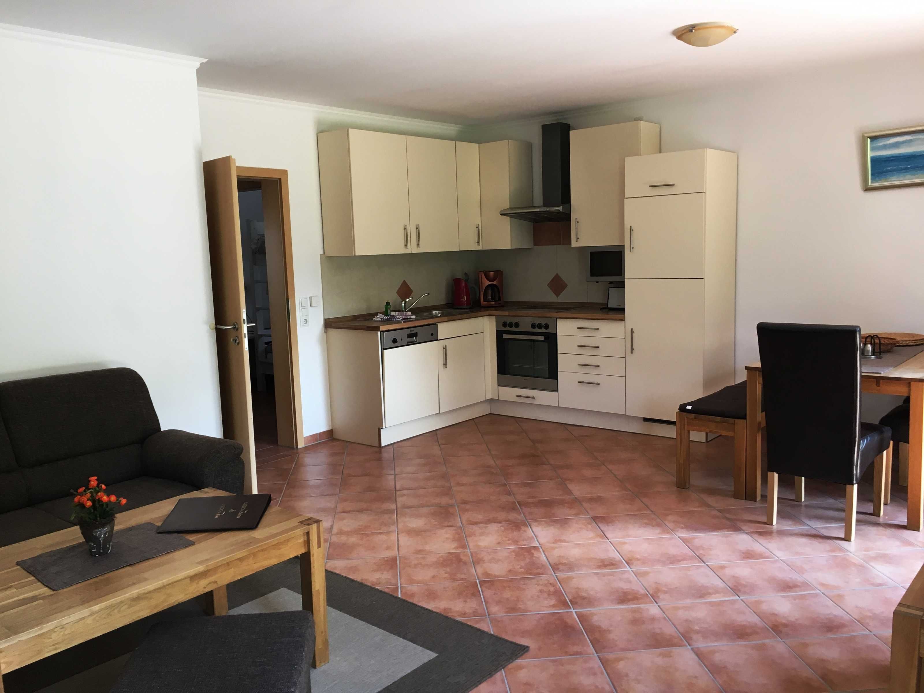 Unsere Suiten Max und Anna mit Terrasse sind modern und gemütlich eingerichtet. Die Suiten haben *** Sterne, die Küche ist im Wohn-, und Esszimmer integriert. Von hier gelangt man direkt auf die schöne Sonnen-Terrasse.