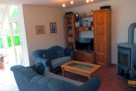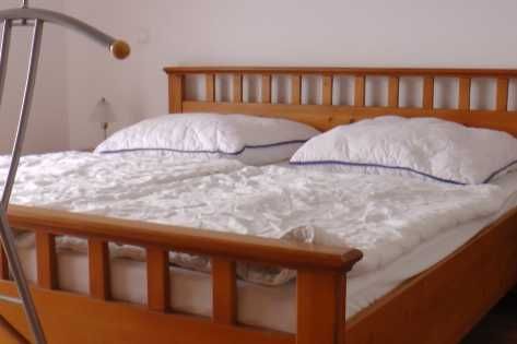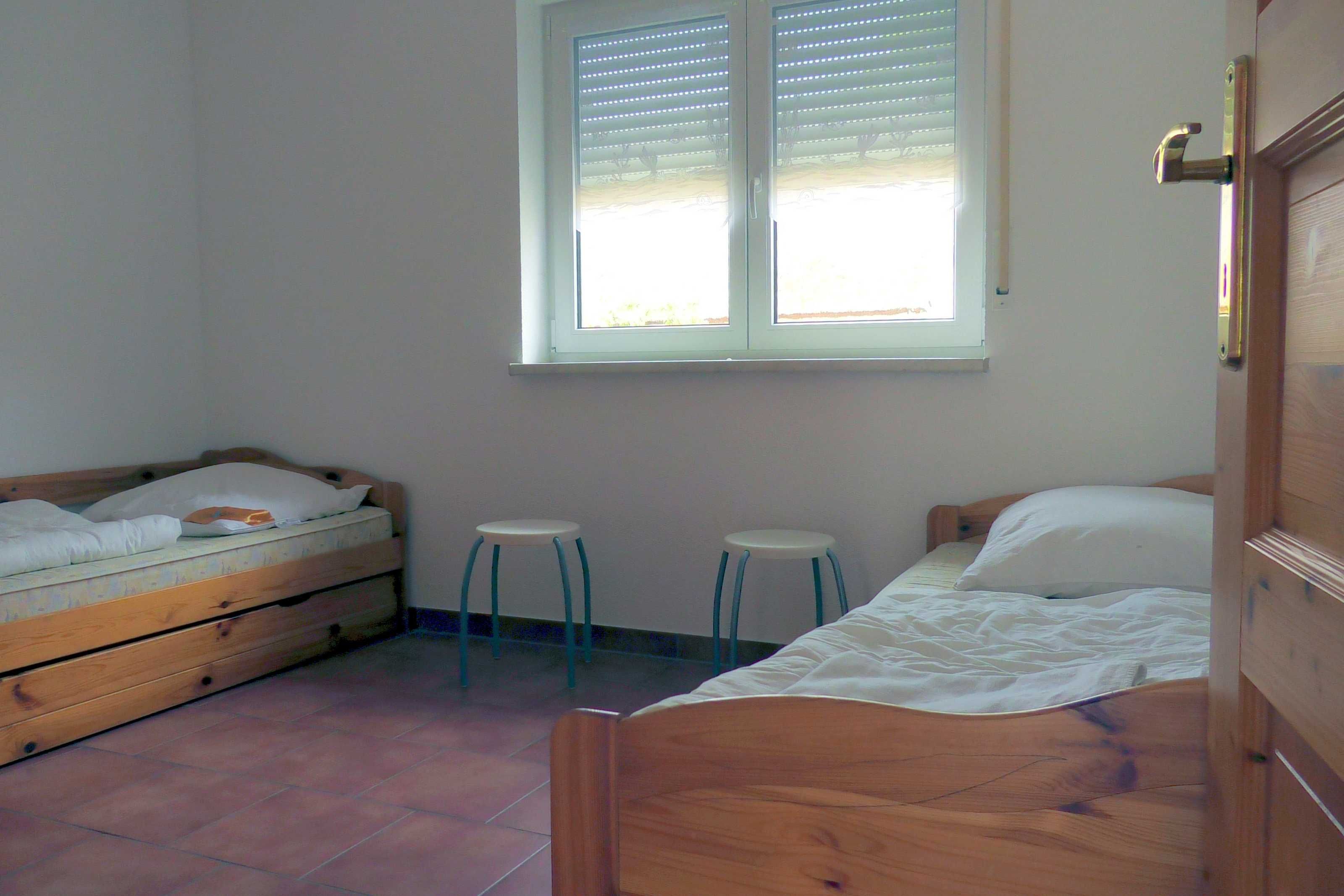 Die Ferienwohnung verfügt über ein Schlafzimmer mit Doppelbett, ein weiteres Schlafzimmer hat 2 Einzelbetten mit Ausziehmöglichkeit (Tandembetten) Kinderstuhl, Kinderbett (keine Kinderbettwäsche), eine Terrasse mit Gartenmöbeln steht zur Verfügung.