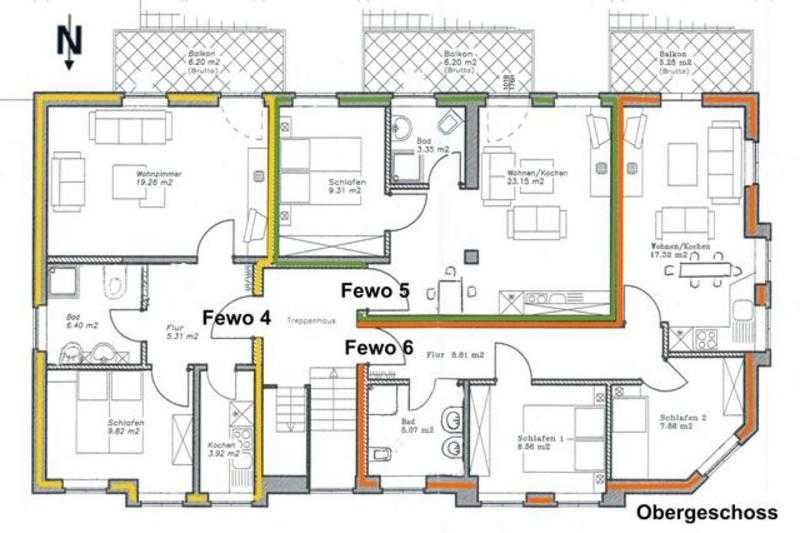 Ferienwohnung (Nr. 4) im Obergeschoss links ist wie folgt ausgestattet.