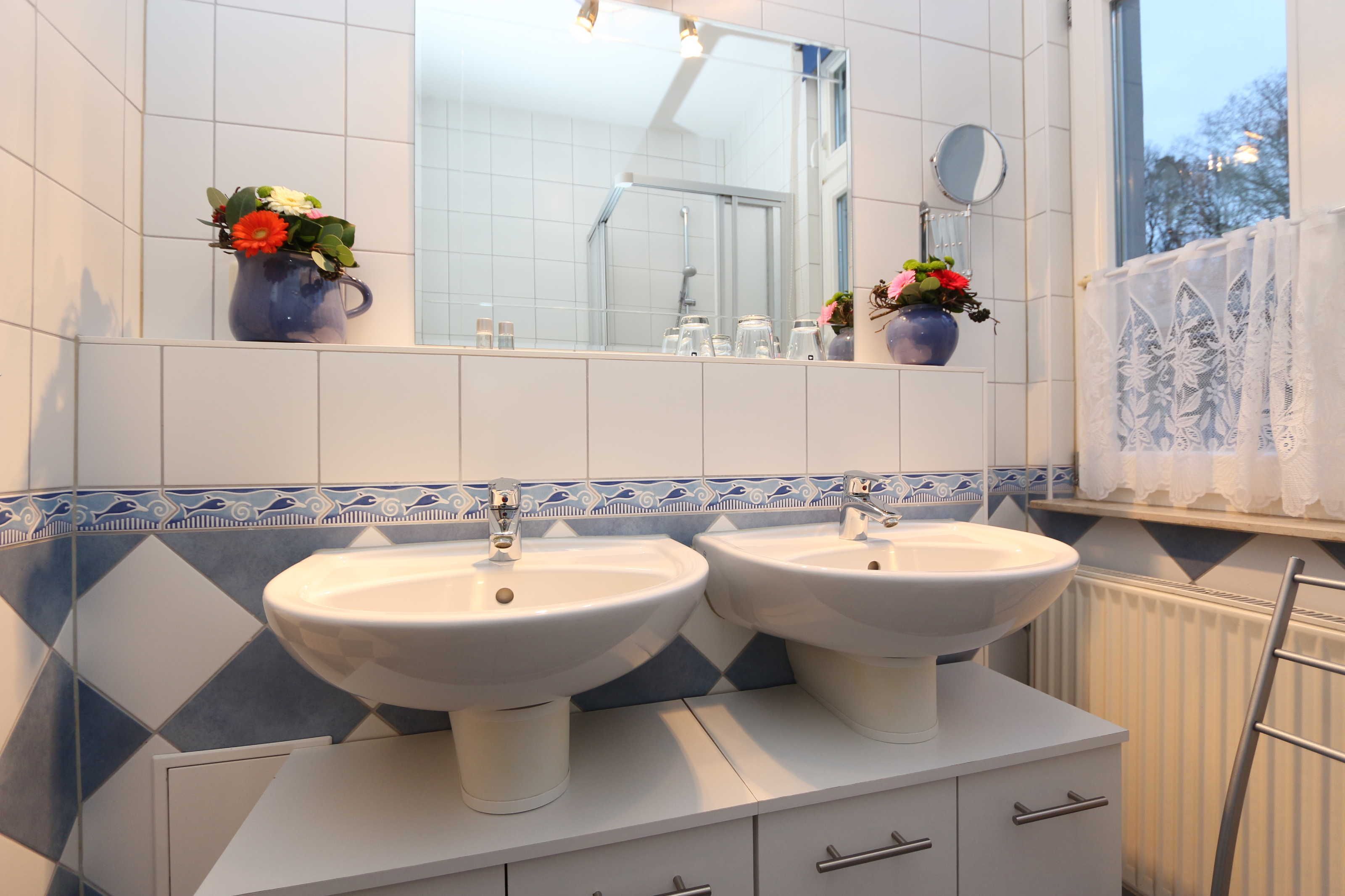 • 1 Bad mit 2 Waschbecken und 1 Dusche