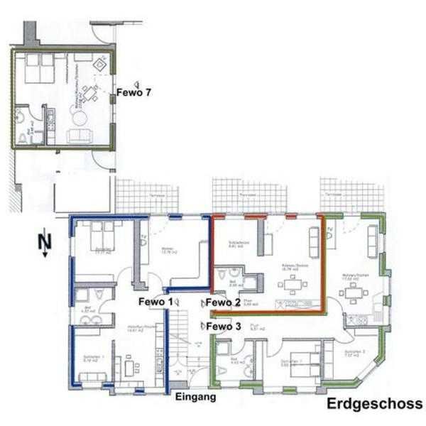 Ferienwohnung (Nr. 3) im Erdgeschoss rechts ist wie folgt ausgestattet.