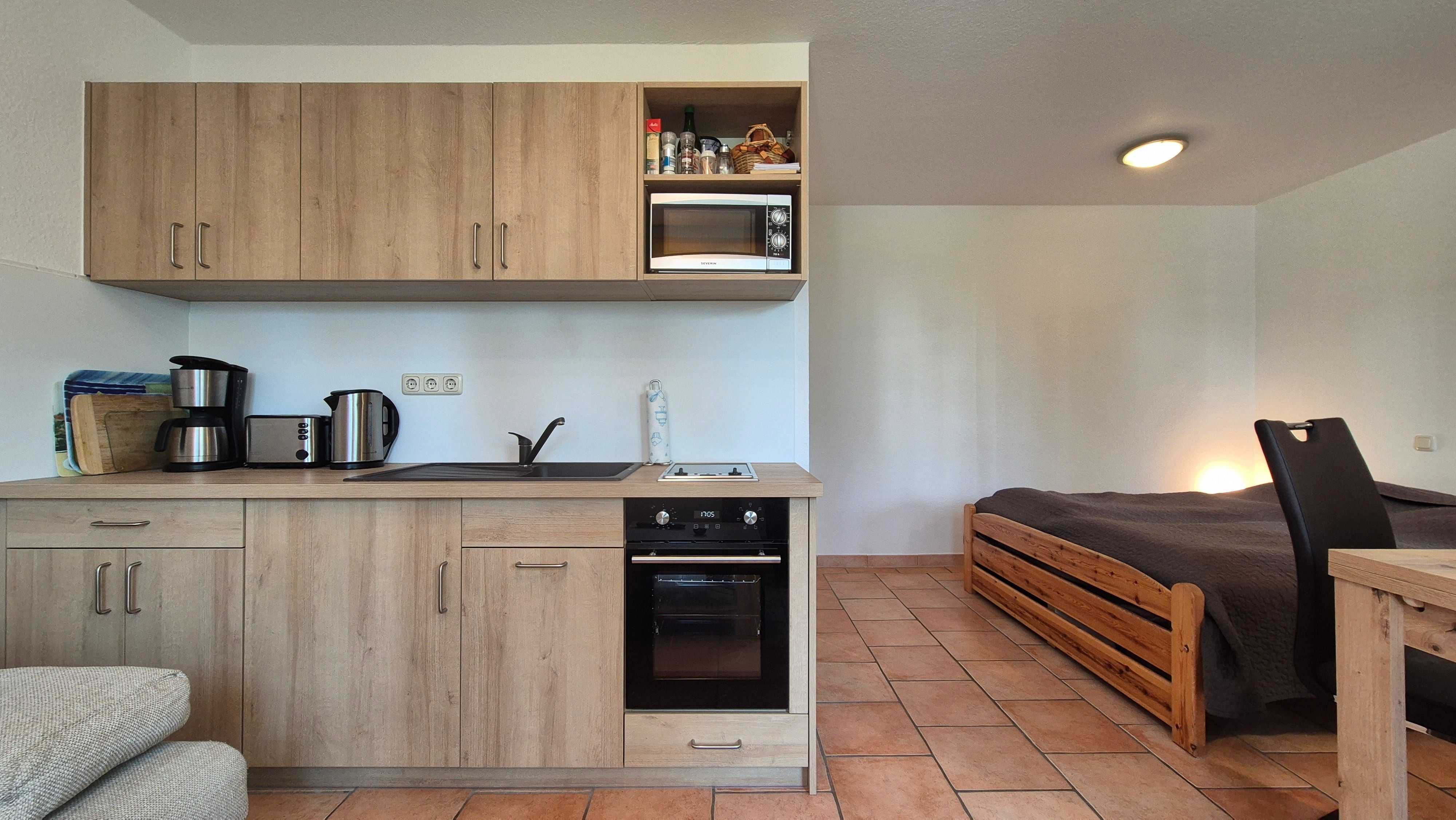 Die 1-Zimmer-Ferienwohnung im Erdgeschoss steht für bis zu 2 Erwachsene zur Verfügung.