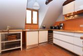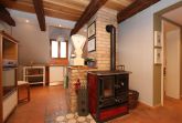 • Die kleine Küche ist mit allem Nötigen für einen Urlaub ausgestattet. Dazu zählt ein Backofen, ein Herd, eine Mikrowelle, ein Kühlschrank, eine Gefriermöglichkeit, eine Spülmaschine und ausreichend Geschirr. Zudem befindet sich hier der Kamin und die Essecke