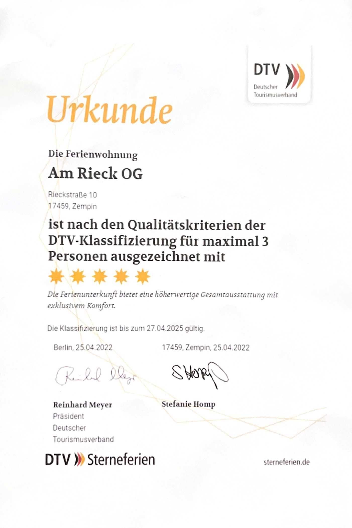 • Diese Wohnung wurde vom DTV (Deutscher Tourismusverband) mit 5 Sternen bei einer Belegung mit bis zu 3 Personen klassifiziert. Bei einer Belegung von mehr als 3 Personen ist der DTV-Sterne-Standard von 5-Sternen nicht mehr gewährleistet. Gästen bieten wir gerne den DTV-Standard von 5-Sternen. Bei einer Buchung wählen Sie dann bitte das Wäschepaket (Bettwäsche und Handtücher) mit aus. Bei einer Nichtauswahl ist der DTV-Sterne-Standard nicht gegeben.