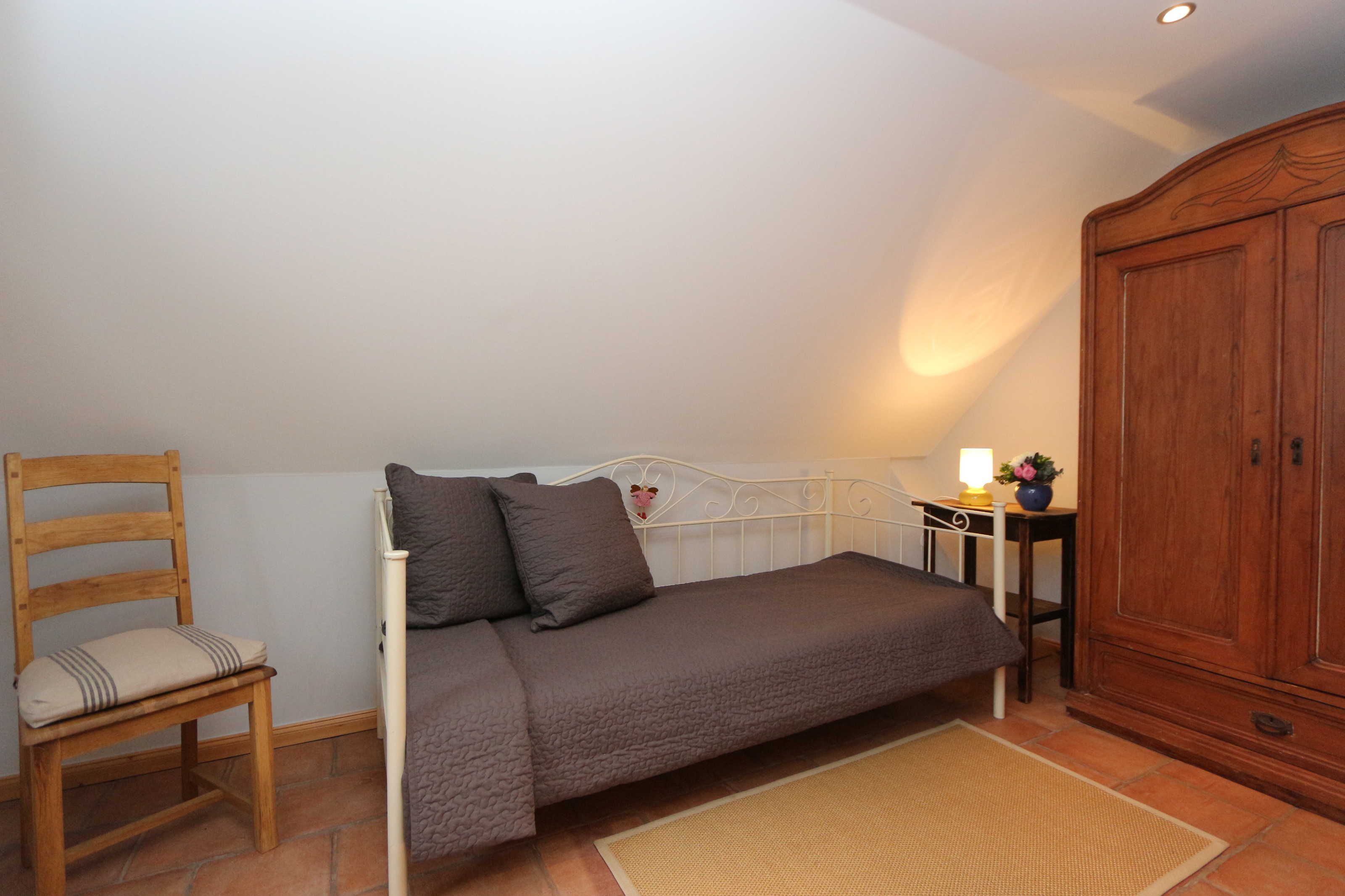 • Das Kinderzimmer befindet sich 1 Einzelbett (0,9 x 2,00m) und ein Kleiderschrank.