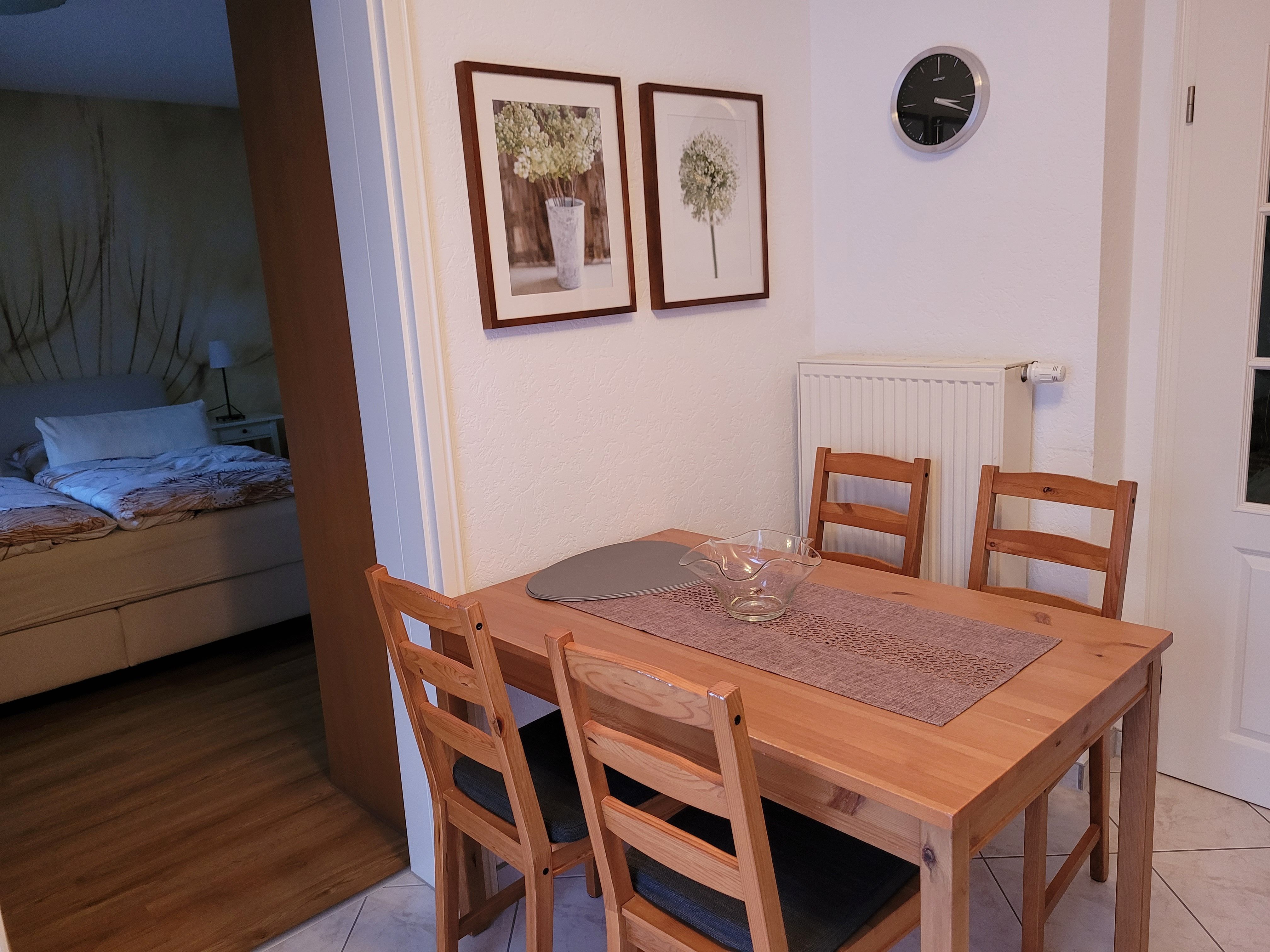 Unsere Ferienwohnung befindet sich im Untergeschoss einer Doppelhaushälfte und verfügt über einen separaten Eingang. Sie ist ca. 60 qm groß und verfügt über zwei separate Räume und ist für die Unterbringung von 1 - 3 Personen geeignet.