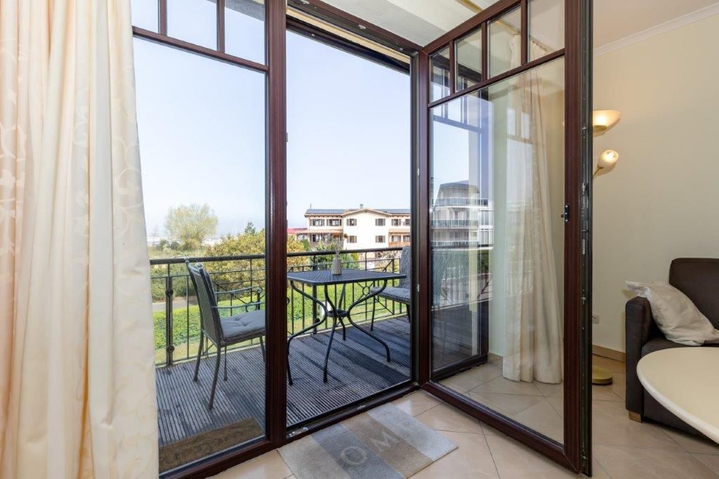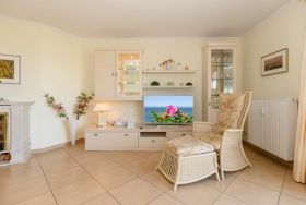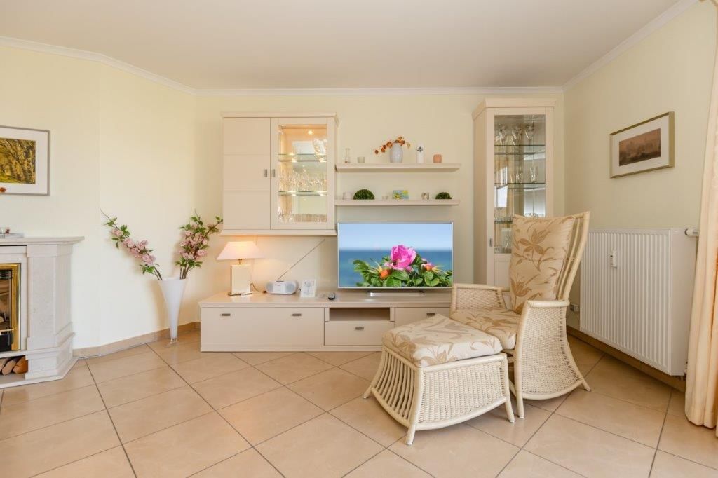 - in der 1. Etage/Aufzug - möblierter Balkon mit direktem Meerblick - Autostellplatz Nr. 1.12a - Tiefgarage (Einfahrtshöhe 2,00 m) - Fahrradkeller - Sauna inkl., Waschmaschine u. Trockner gegen Gebühr - Nichtraucherappartement! Keine Haustiere! - WLAN-Bereitstellung kostenfrei (ohne Gewähr) - Wohn/Schlafbereich mit Schlafcouch, integrierter Küche und Essplatz - Küchenzeile - Herd mit Backröhre, Mikrowelle, Kühlschrank mit Gefriermöglichkeit und Geschirrspüler - 1. Schlafzimmer mit Doppelbett und Kleiderschrank - DU/WC