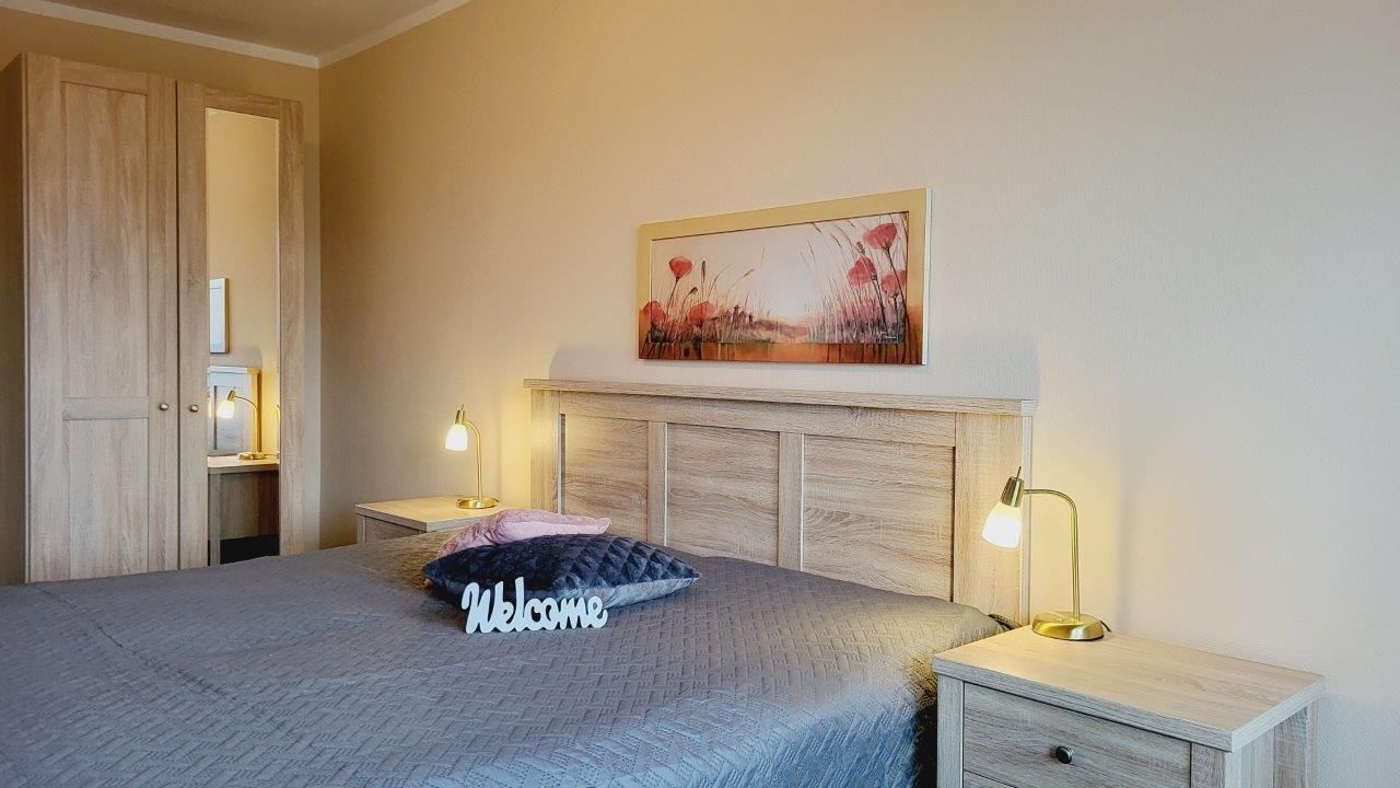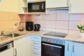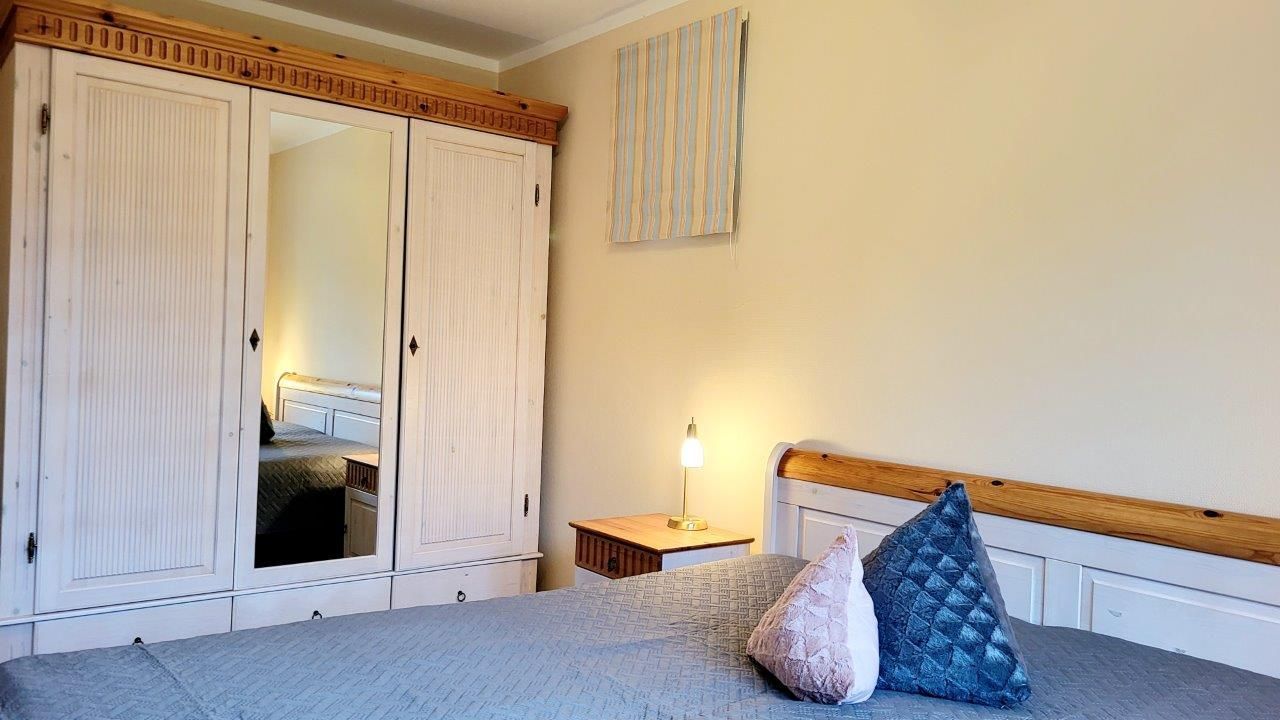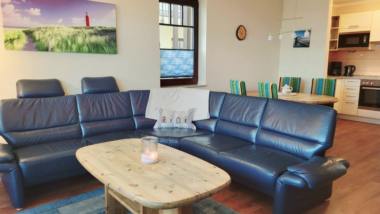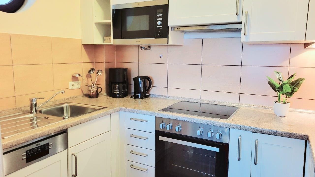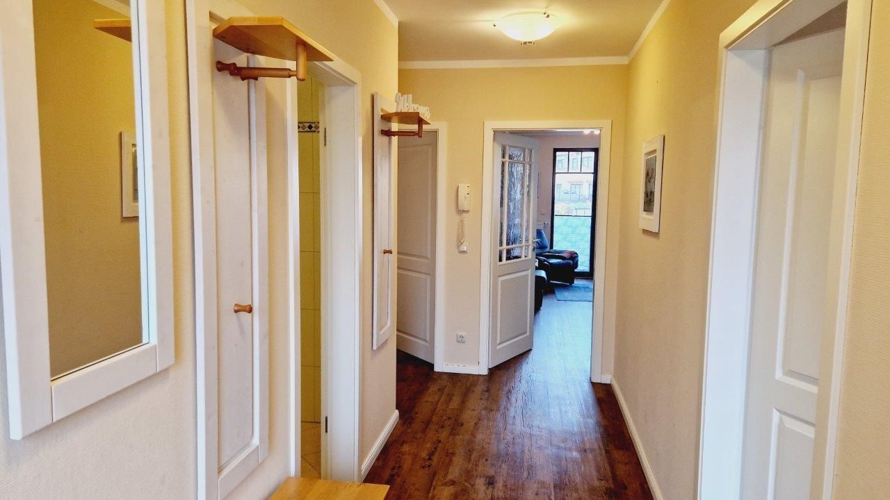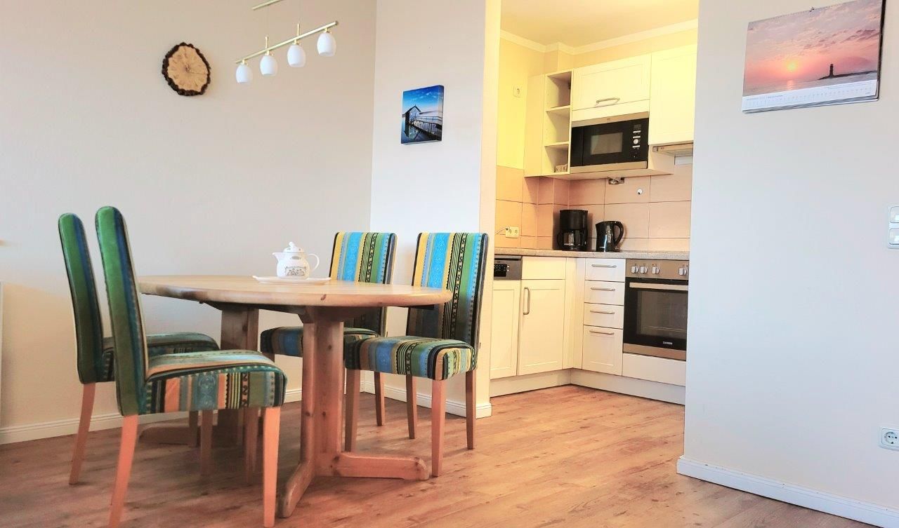 - in der Parterre/Aufzug - möblierte Terrasse zur Meerseite - Autostellplatz Nr. 1.9 - Tiefgarage (Einfahrtshöhe 2,00 m) - Fahrradkeller - Sauna inkl., Waschmaschine u. Trockner gegen Gebühr - Nichtraucherappartement! Keine Haustiere! - WLAN-Bereitstellung kostenfrei (ohne Gewähr) - Wohnbereich mit integrierter Küche und Essplatz - Küchenzeile - Herd mit Backröhre, Mikrowelle, Kühlschrank mit Gefriermöglichkeit und Geschirrspüler - 1. Schlafzimmer mit Doppelbett, Kleiderschrank und TV - 2. Schlafzimmer mit Doppelbett und Kleiderschrank - DU/WC (separat)