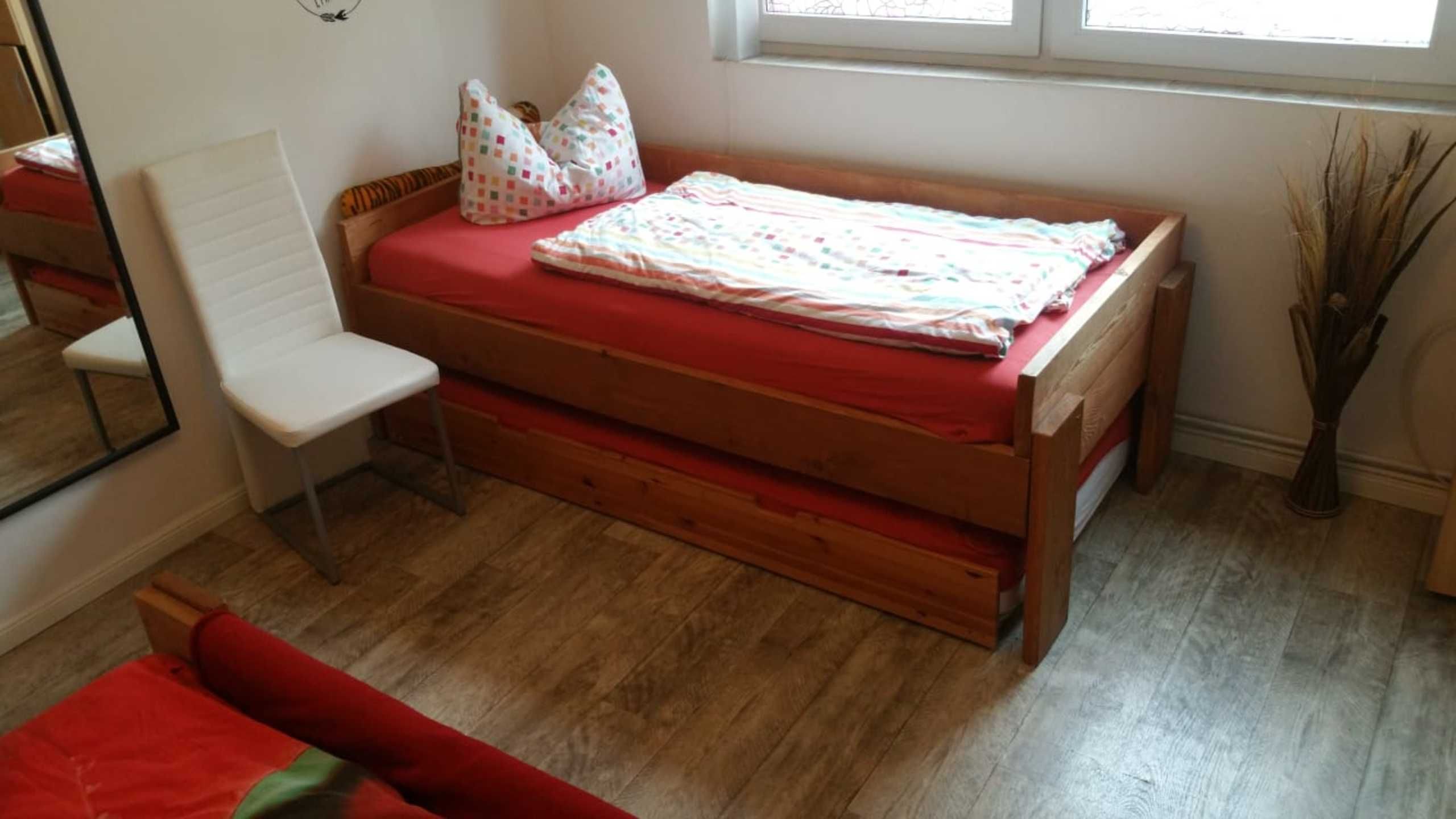 Die 45m² große Zweiraumwohnung mit voll ausgestatteter Küche und separatem Bad (Dusche/WC) verfügt über ein Schlafzimmer mit Doppelbett (180x200; getrennte Matratzen), Einzelbett (90x200; ausziehbar) und TV sowie ein Wohnzimmer mit Fußbodenheizung, Couch (120x200) als Aufbettung für 2 weitere Personen und Sat-TV. Die Ferienwohnung befindet sich im Erdgeschoss des Hauses und verfügt über einen gemeinsamen Flur mit der Ferienwohnung 2.