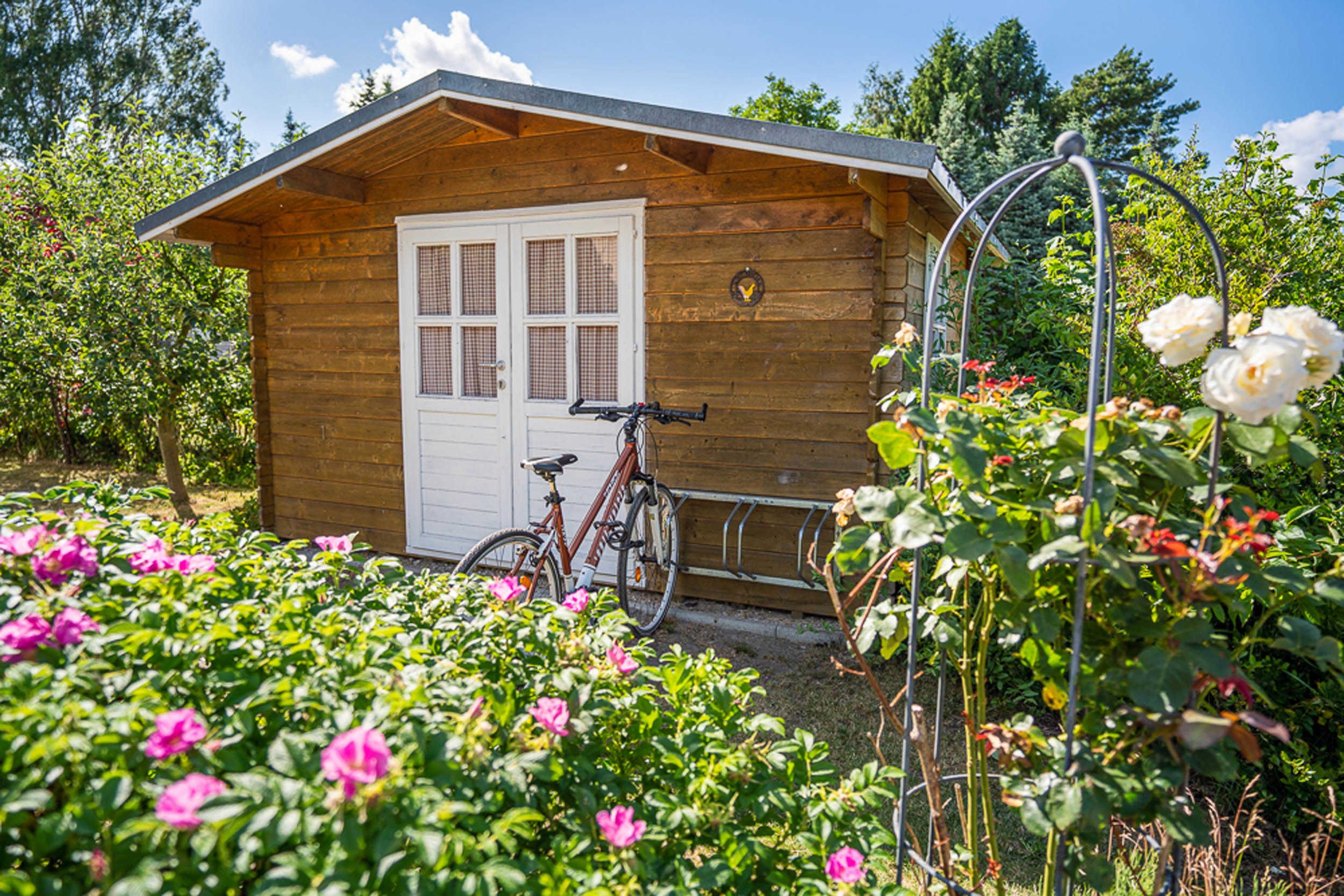 - Fahrradschuppen mit Lademöglichkeit für E-Bikes,