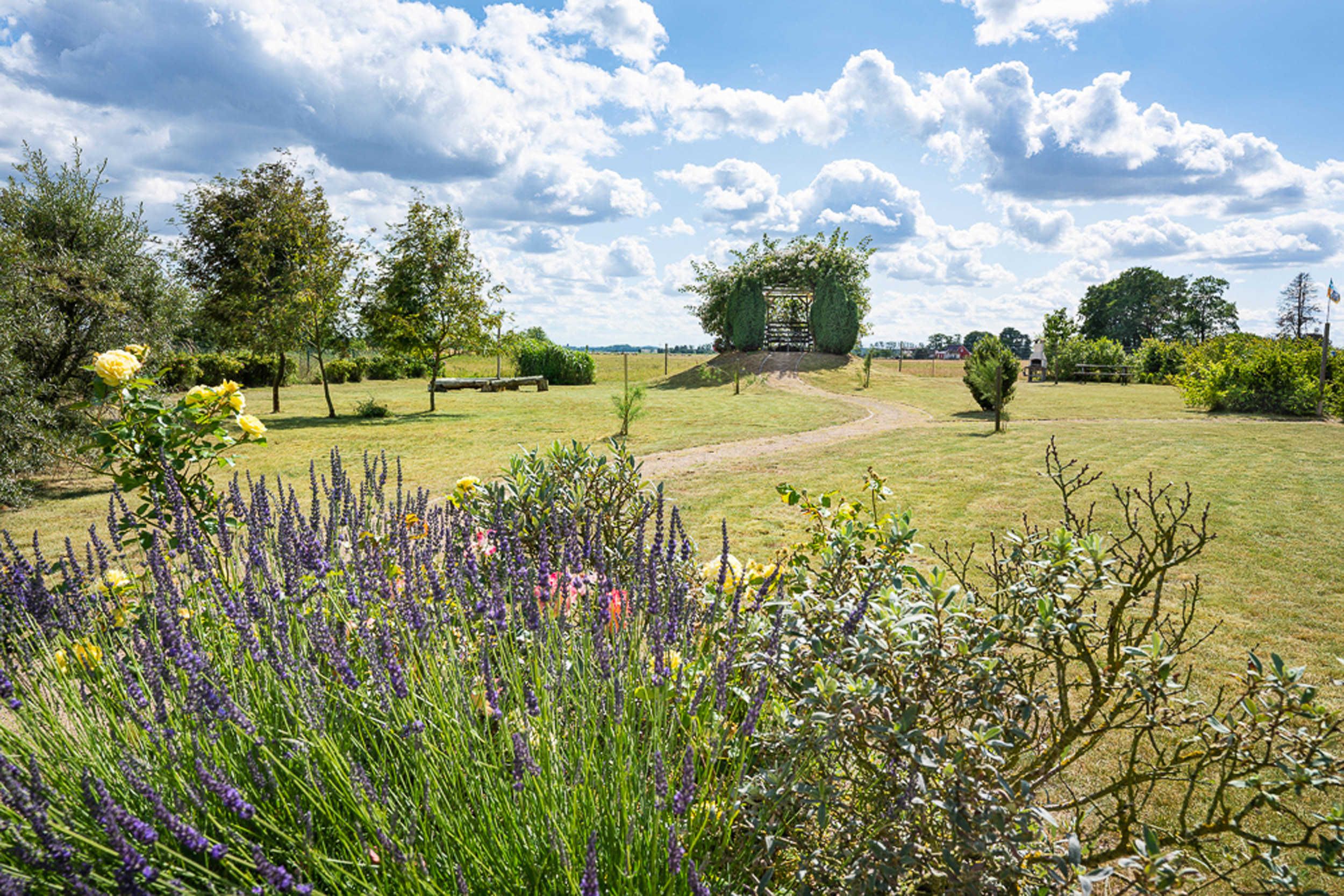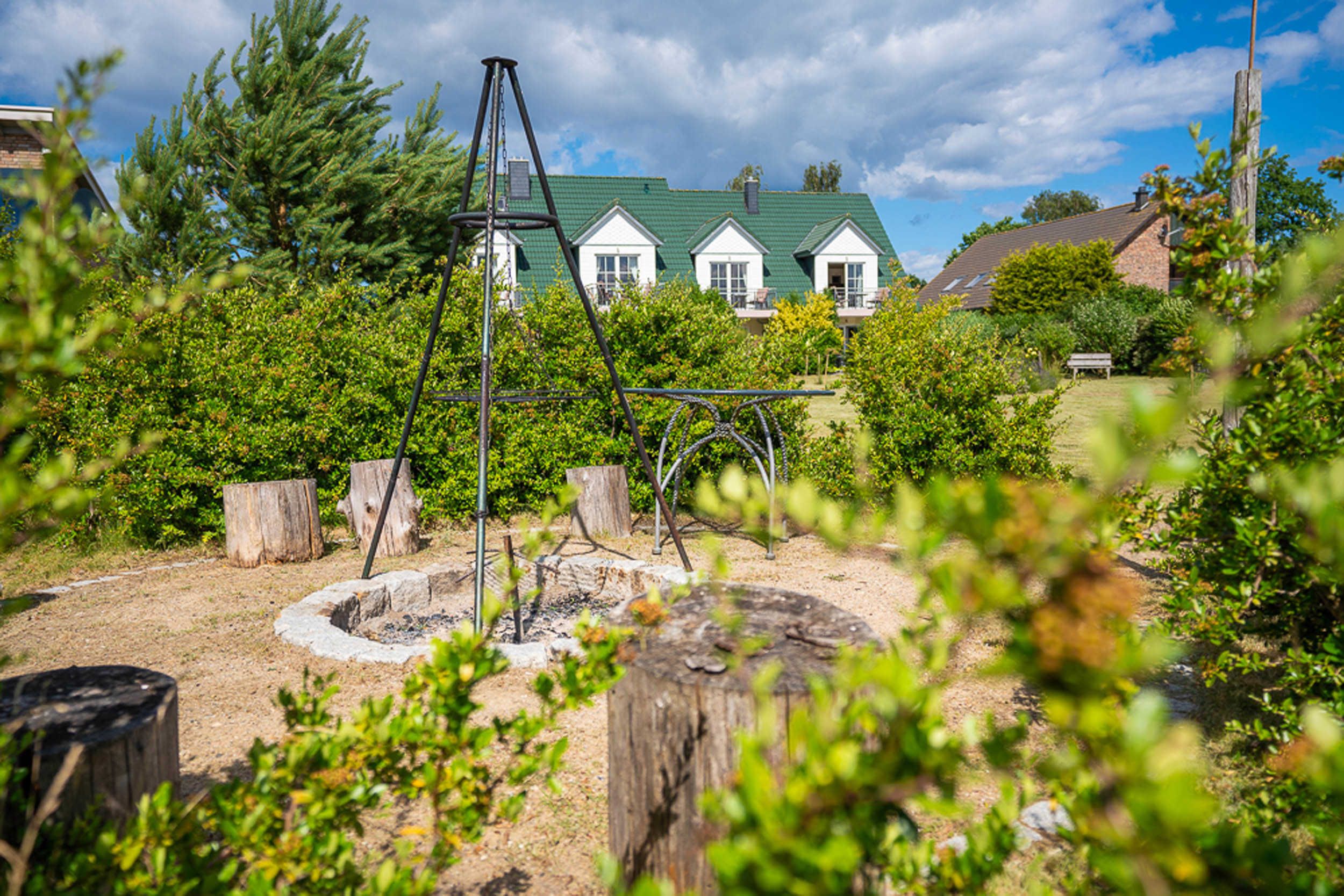 Der große Garten bietet Auslauf zum Spielen, Sitzplätze in Pavillons, Grillplätze und eine Feuerstelle für schöne Abende nach einem Tag am weißen, breiten und langen Strand.