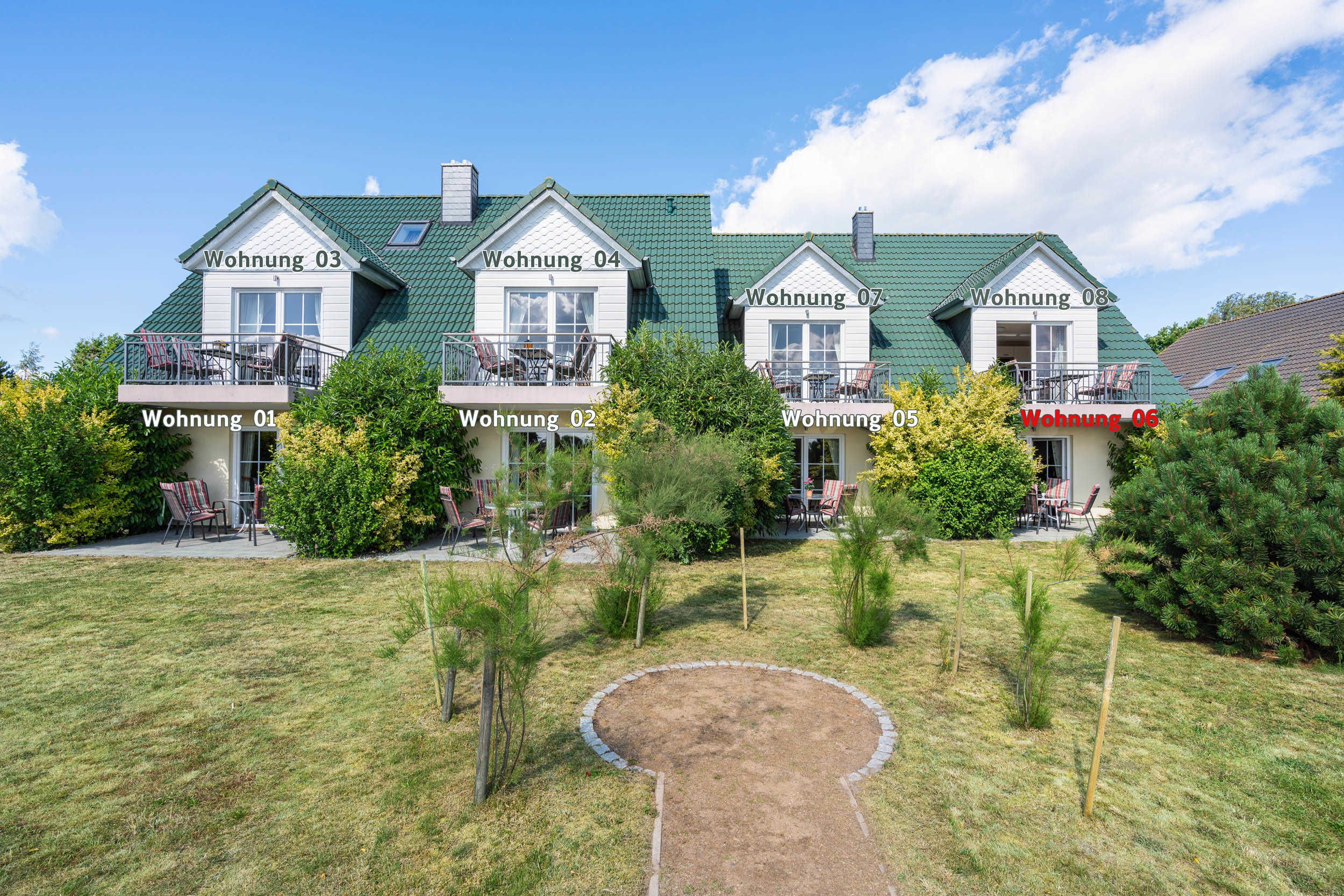 Die 2-Raum-Ferienwohnungen 01,02,05 und 06 befinden sich im Erdgeschoss und verfügen alle über eine Terrasse zum Garten.
