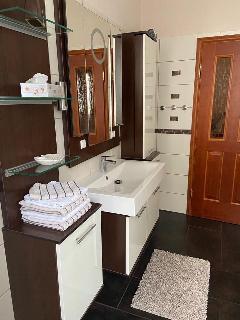 Aufbettung im Wohnzimmer mit Dauerschlafcouch (1,60 m ) möglich. Im Schlafraum ist ein Doppelbett 1,60 m vorhanden. Die Wohnung ist komplett mit Pakettfußboden ausgelegt. Kinderreisebett und Kinderhochstuhl auf Anfrage.