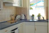 Direkt neben dem Wohnzimmer befindet sich die Essecke sowie eine komplett eingerichtete offene Küche mit Mikrowelle, 4-Zonen-Cerankochfeld, Herd und Geschirrspüler. Ausreichend Geschirr, Töpfe und Pfannen, Wasserkocher, Toaster, Kaffeemaschine usw. sind selbstverständlich vorhanden.
