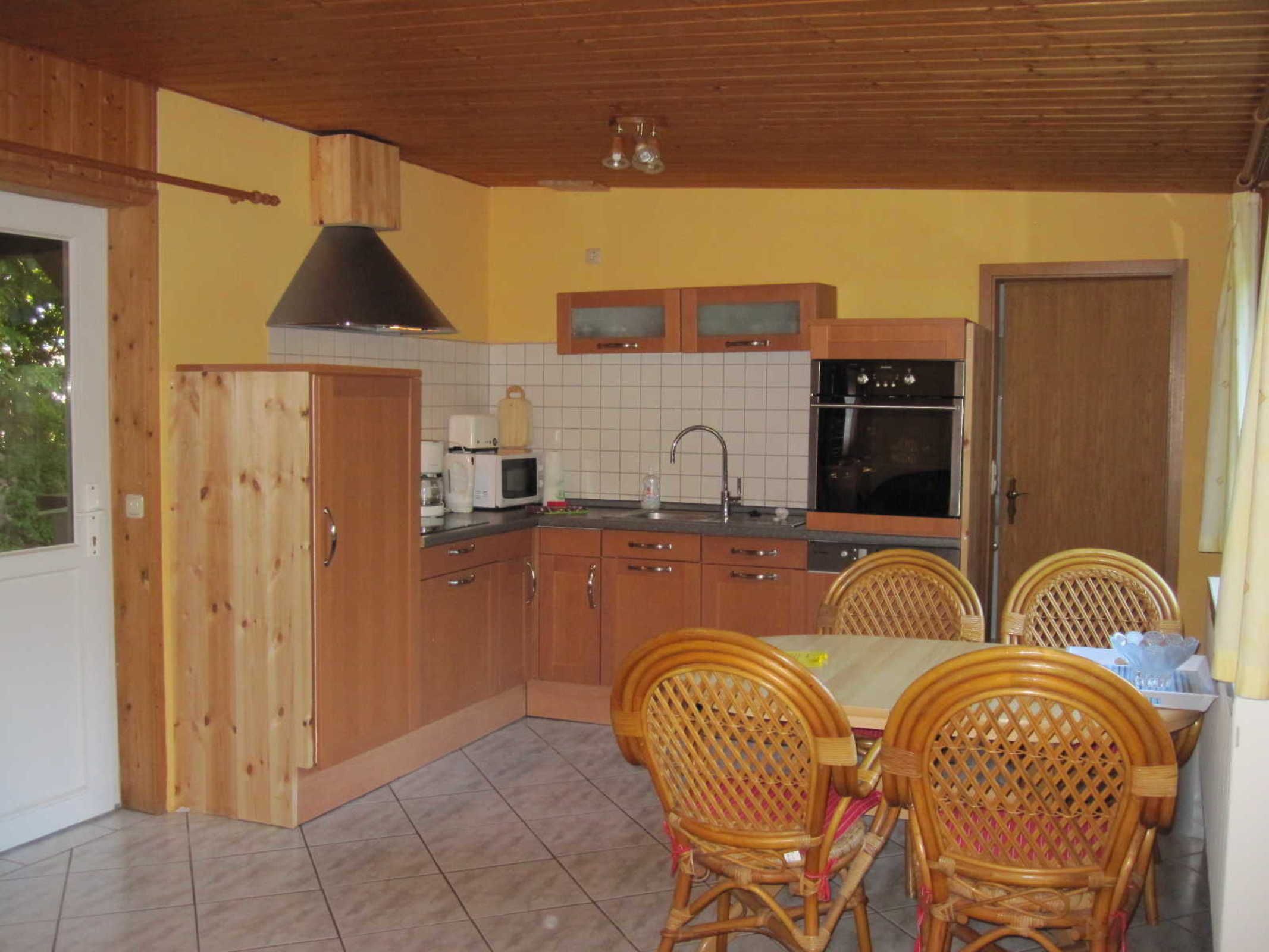 komplett ausgestattete Einbauküche mit 4-Platten-Cerankochfeld, Backofen,Kühlschrank mit Gefrierteil, Kaffeemaschine, Toaster, Wasserkocher,div. Geschirr, Essecke.